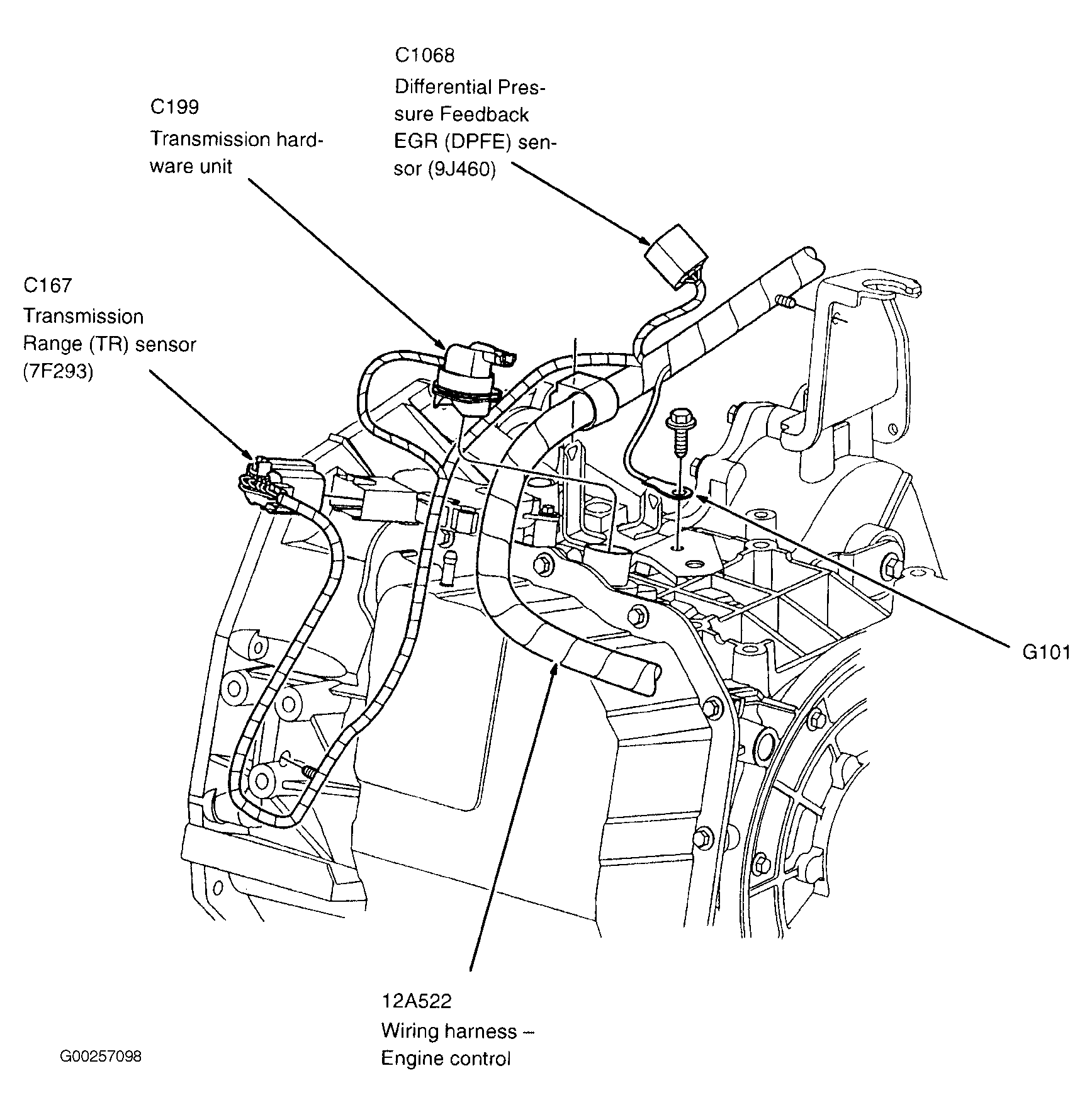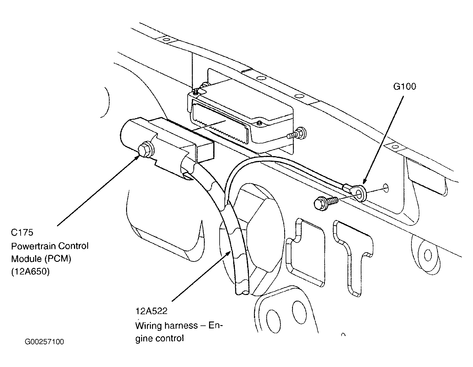 Powertrain Control Module (PCM) In recess on upper center of firewall. See Figure .