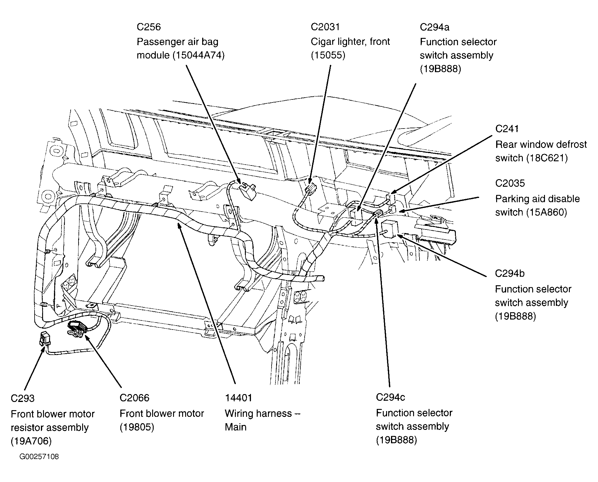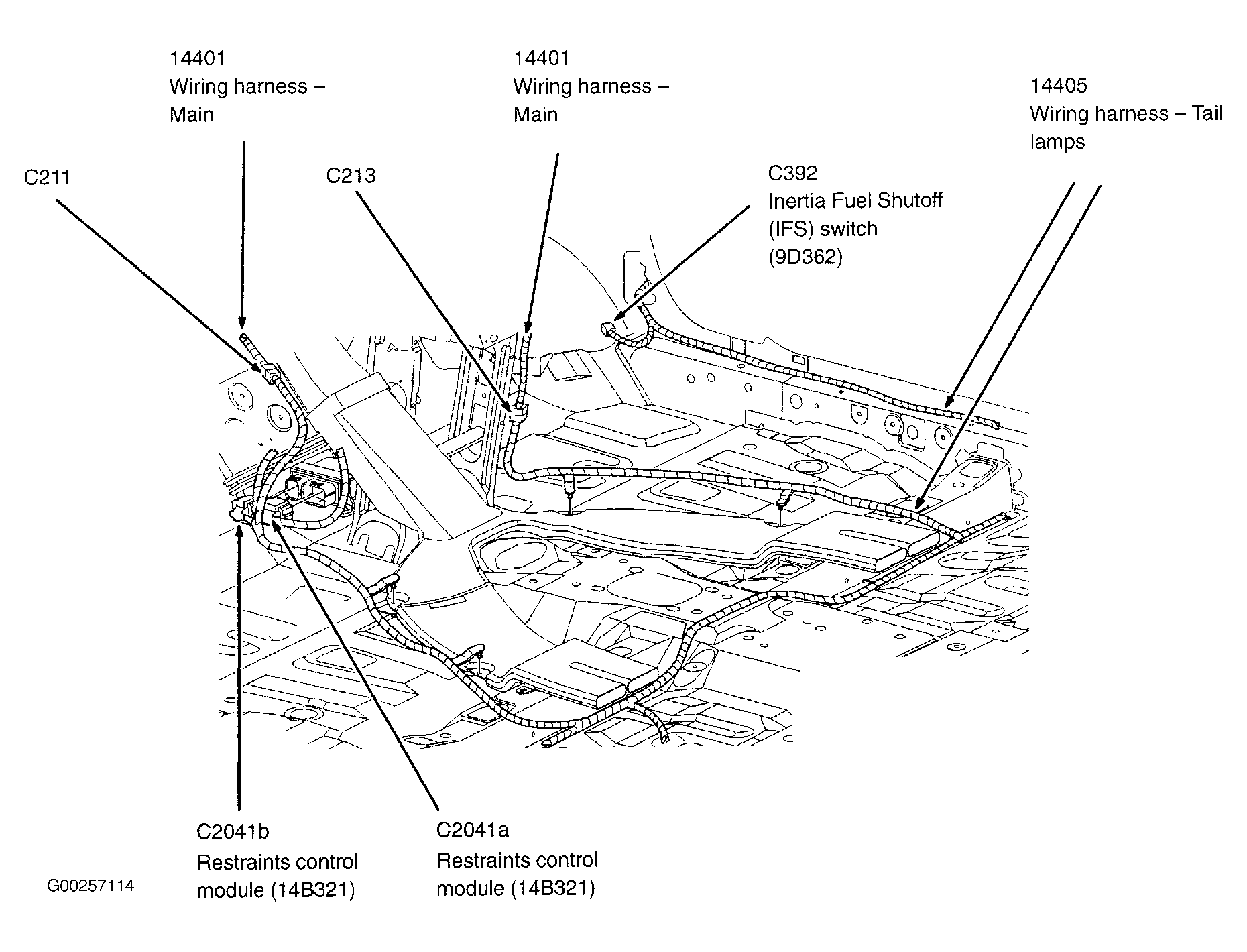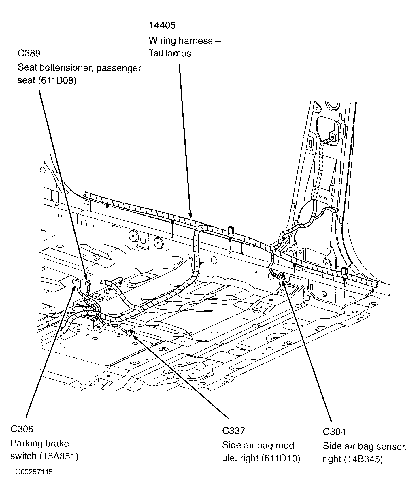 Restraints Control Module Beneath lower center of dash, on transmission tunnel. See Figure .