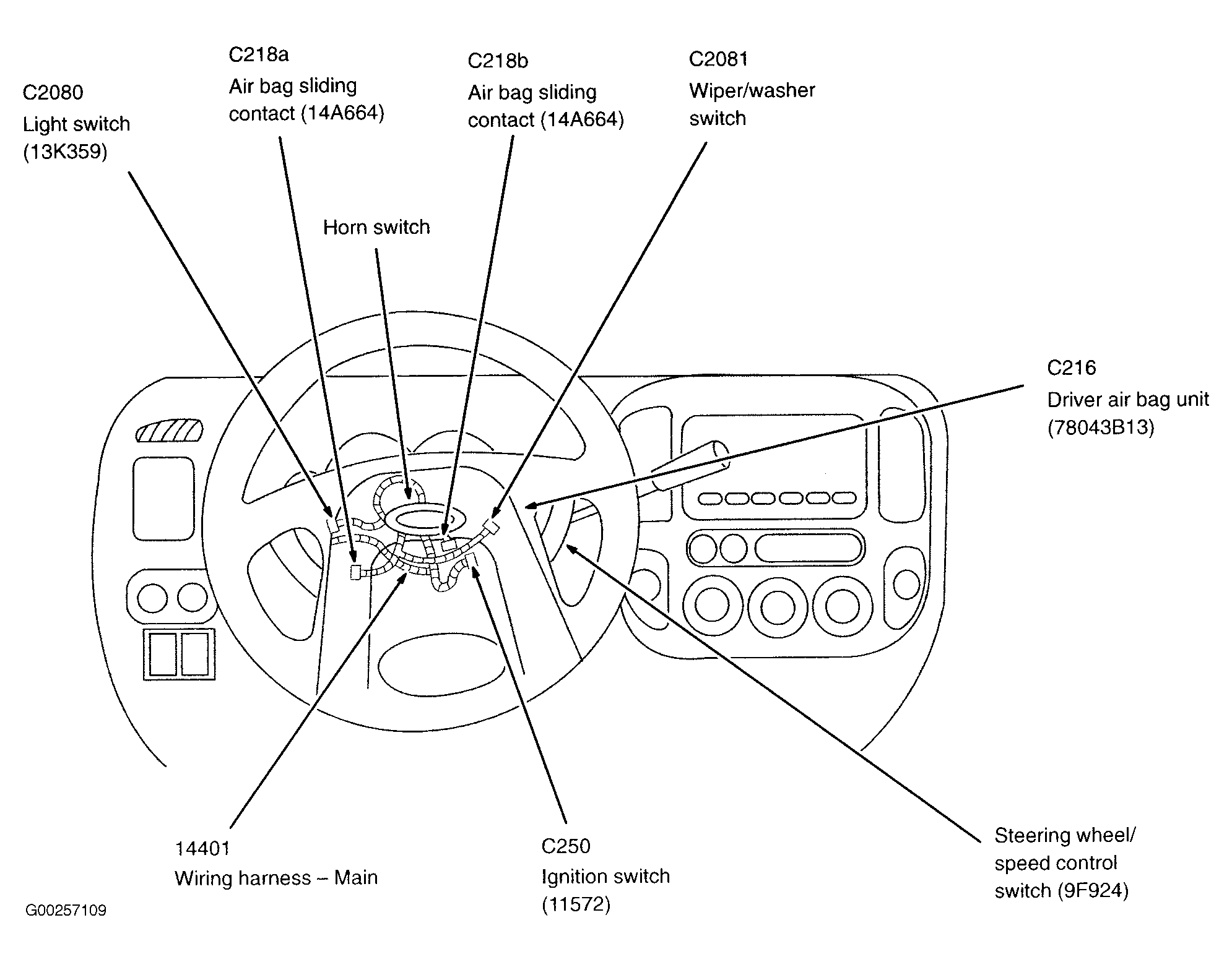 Driver Air Bag Unit On steering wheel. See Figure .