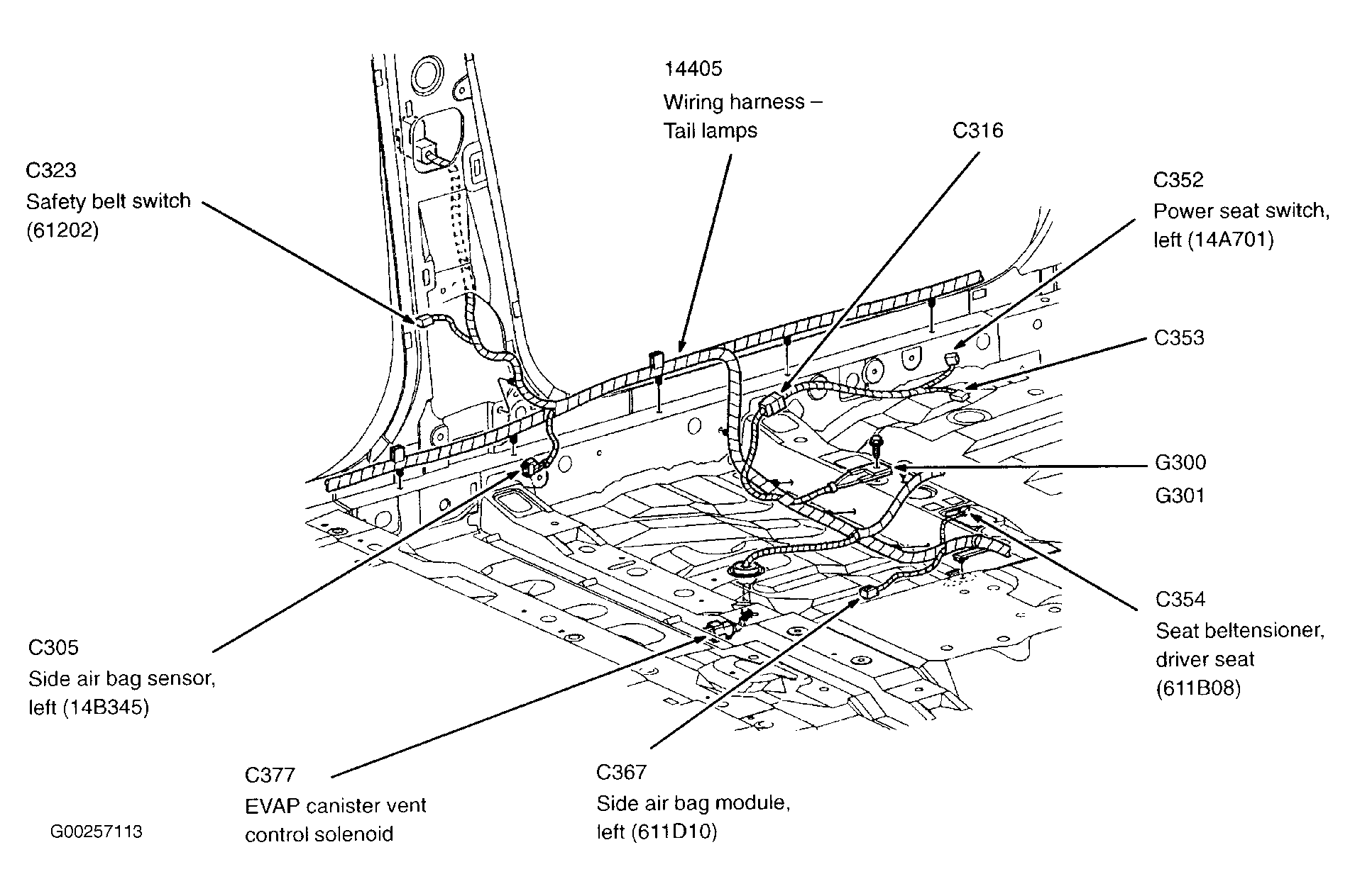 Side Air Bag Module (Left) On left front floor. See Figure .