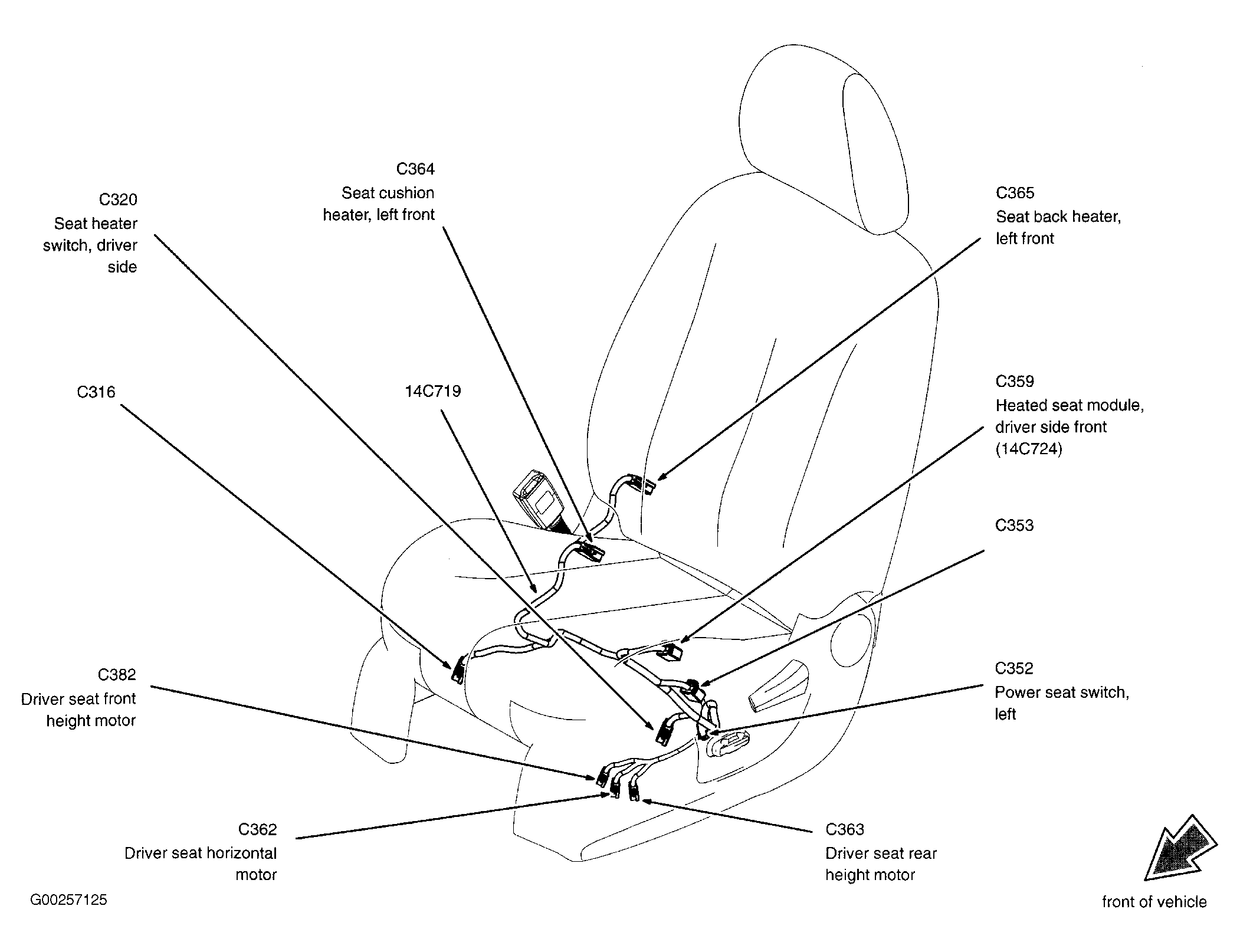 Heated Seat Module (Driver Side Front) Under driver's seat. See Figure .