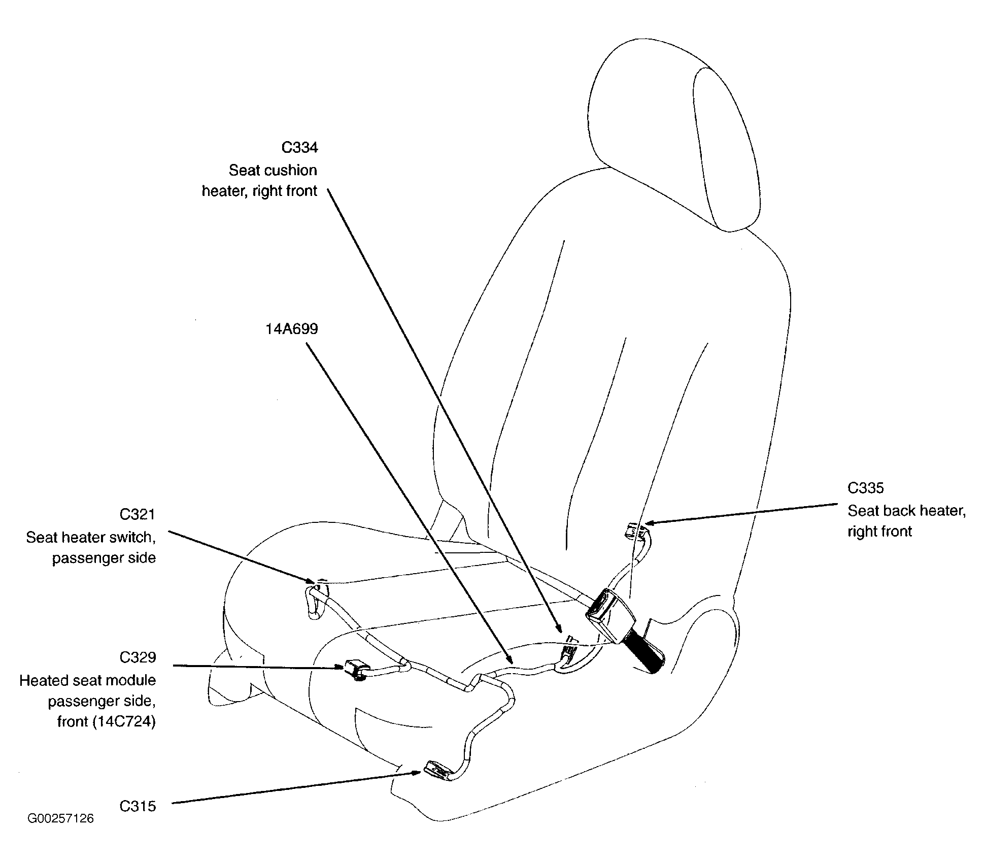 Heated Seat Module (Passenger Side Front) Under passenger's seat. See Figure .