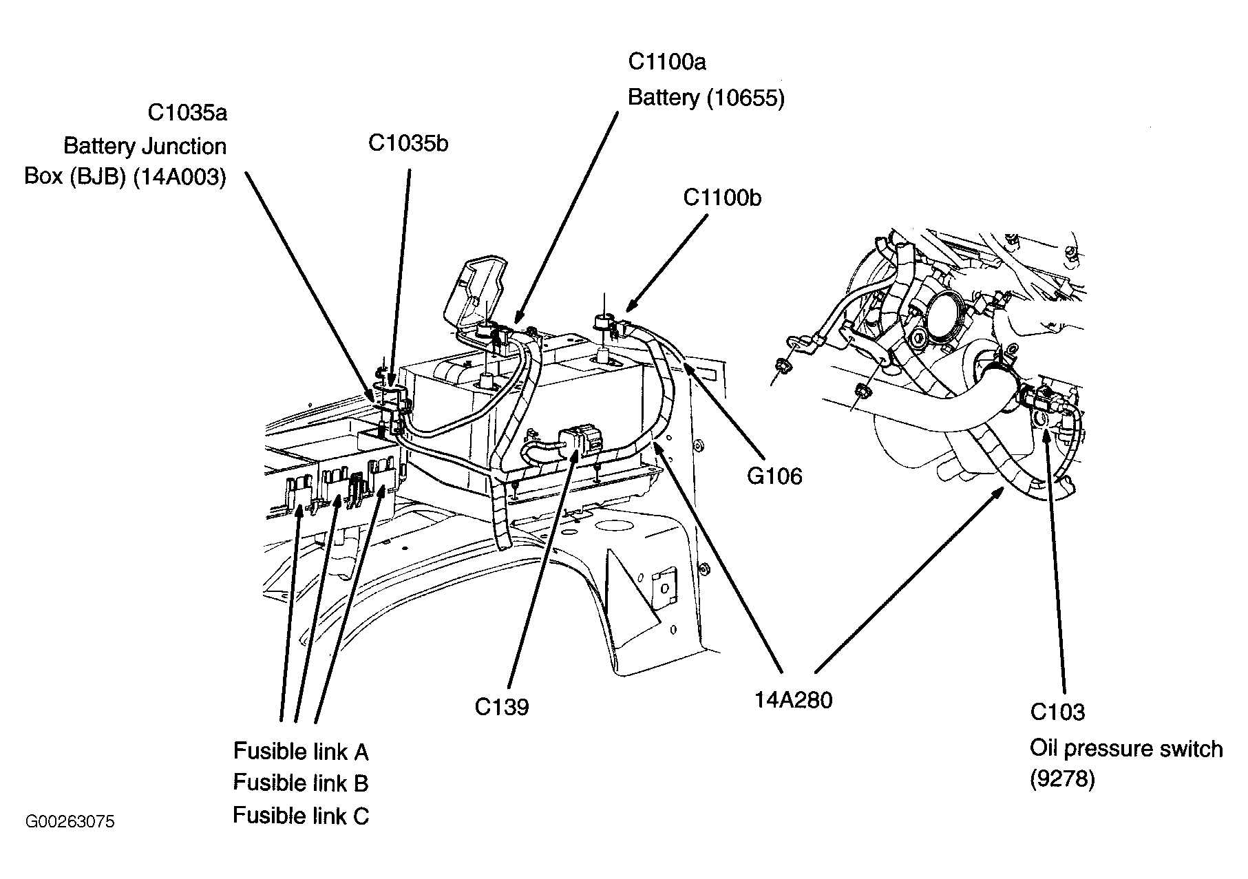 | Fusible Link C | On left side of engine compartment. See Figure. |