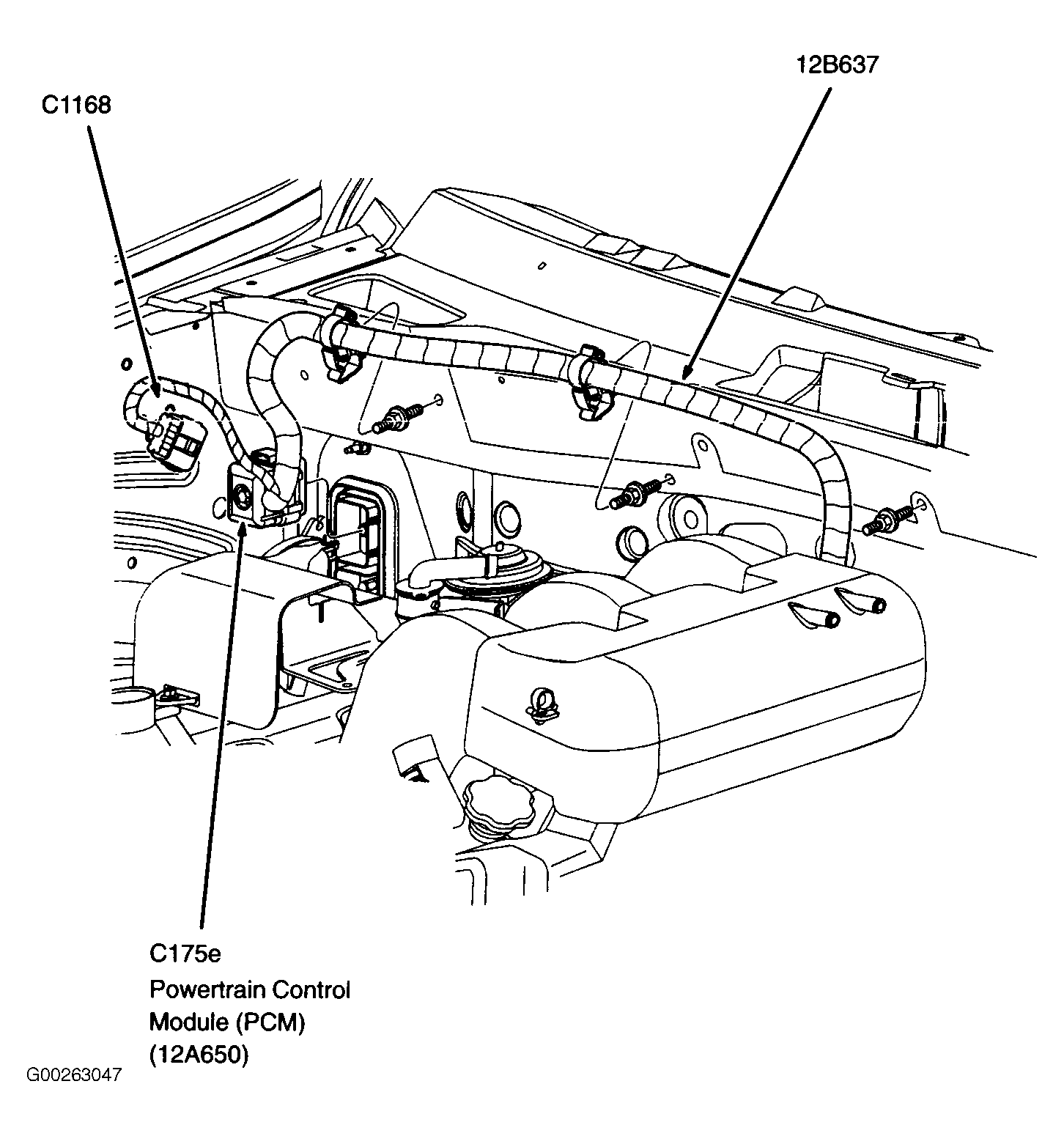 Powertrain Control Module (PCM) At right side engine bulkhead. See Figure.