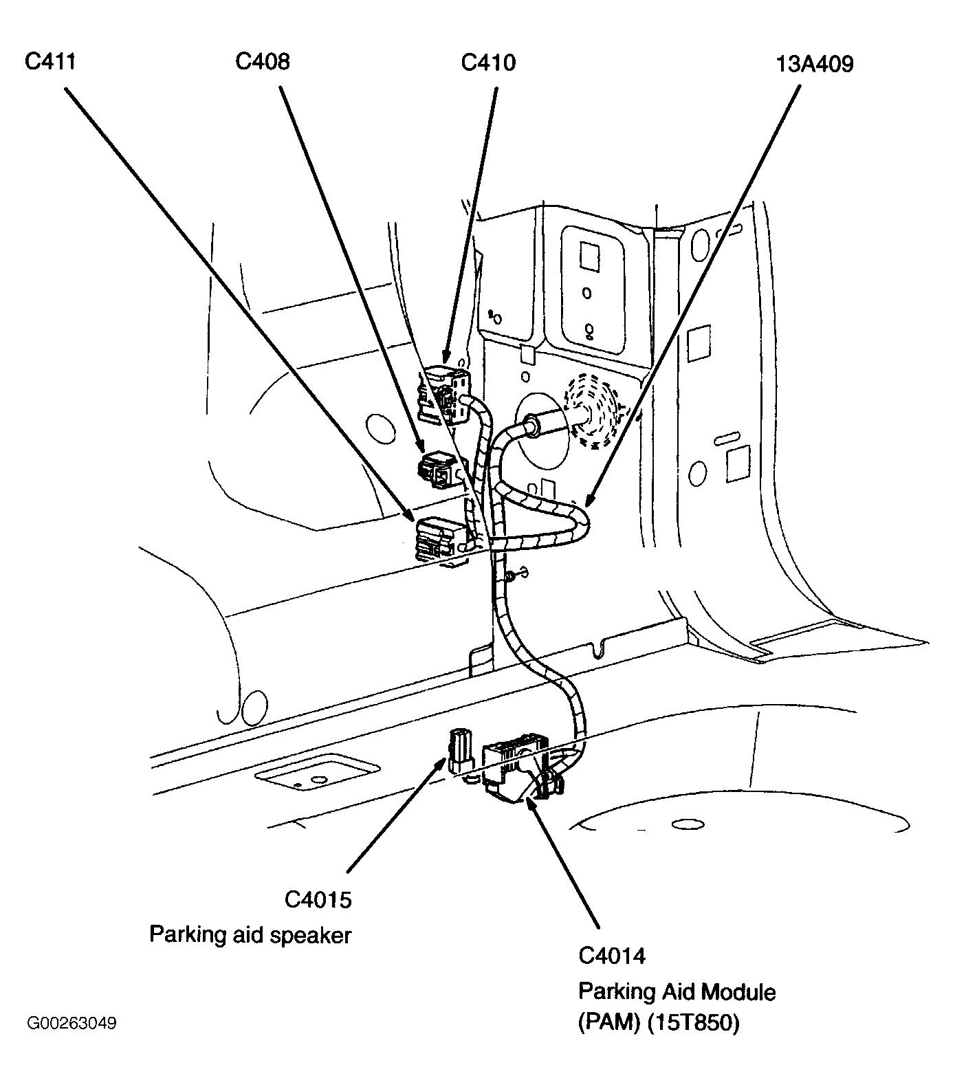 Parking Aid Module (PAM) At right "D" pillar. See Figure.