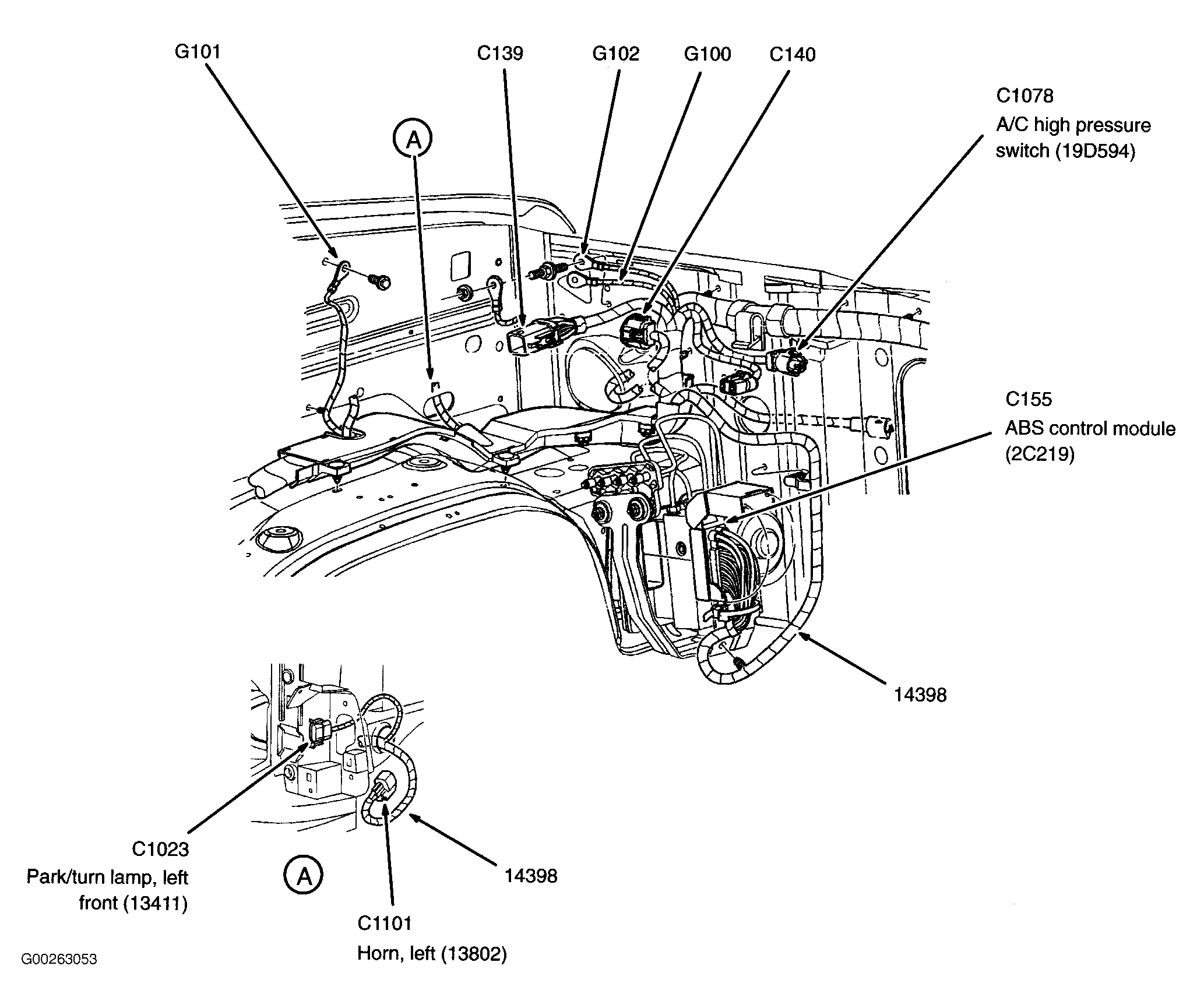 ABS Control Module Left front of engine compartment. See Figure.