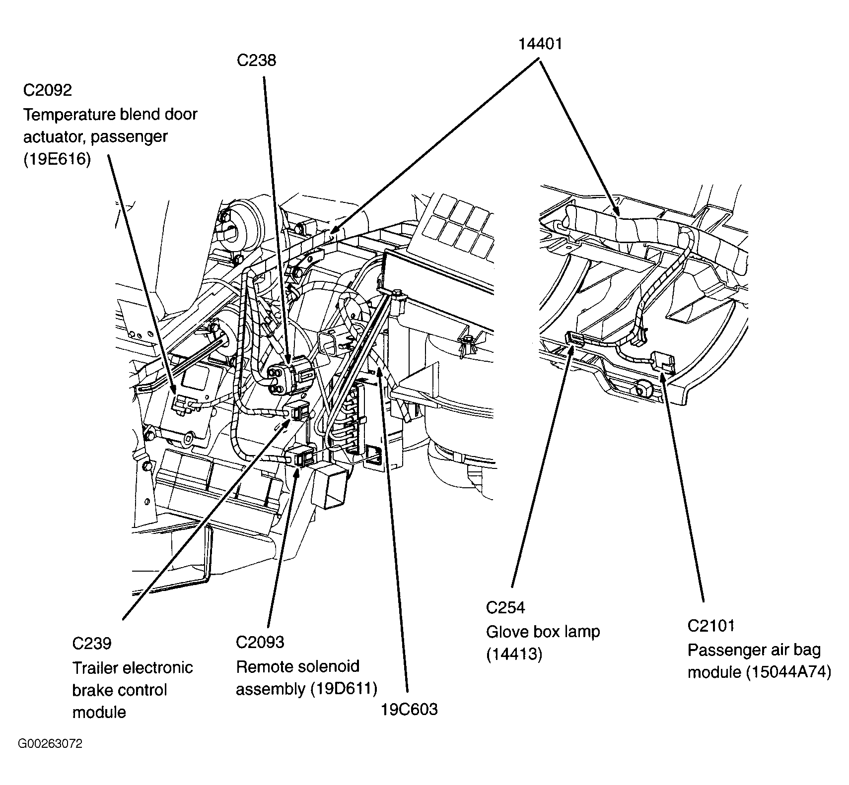 Passenger Air Bag Module Behind right side of dash. See Figure.