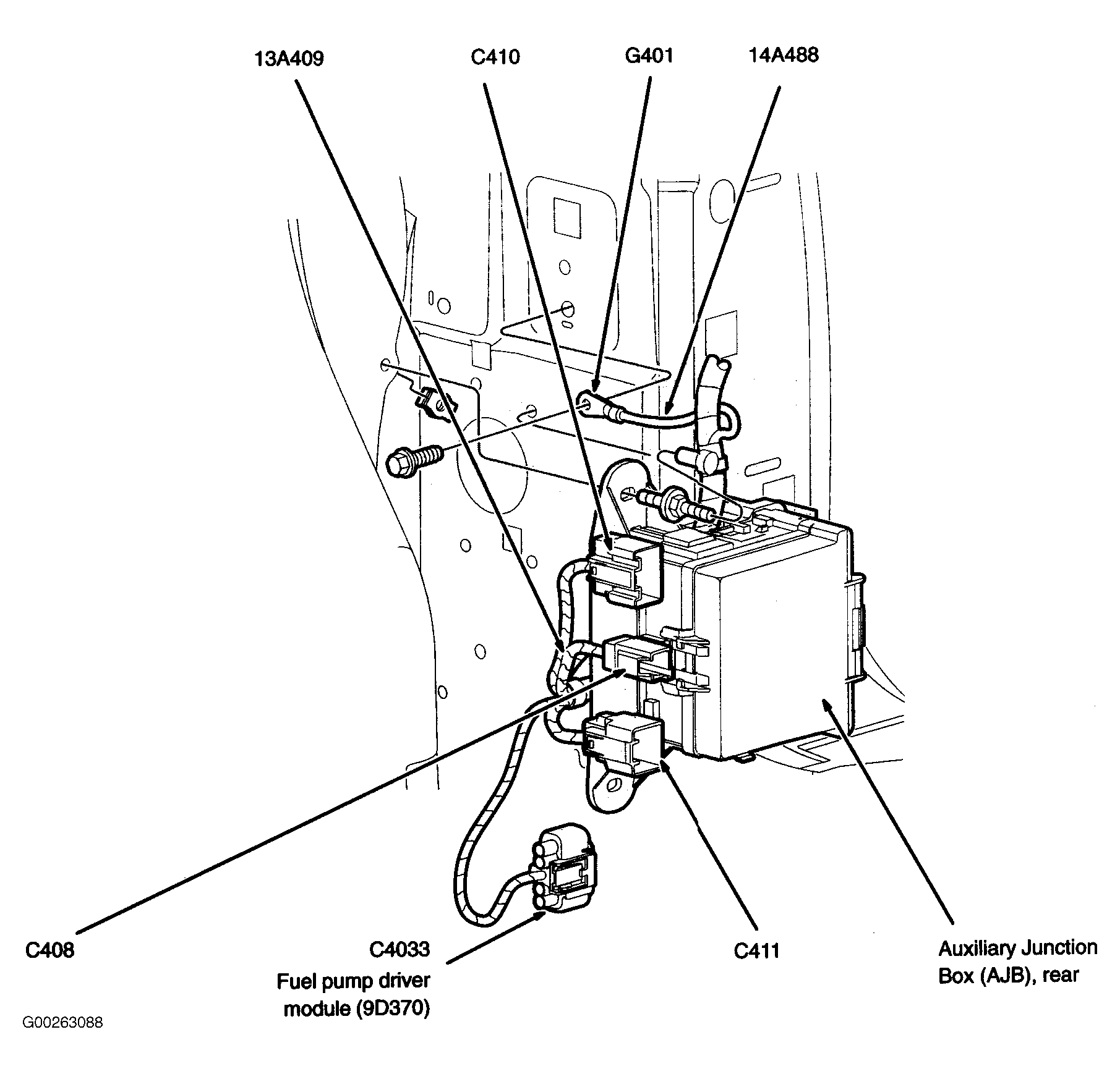 Fuel Pump Driver Module At right "D" pillar. See Figure.