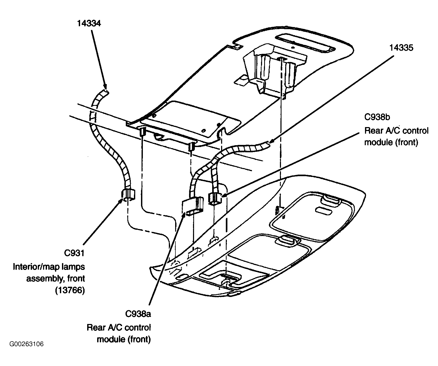 Rear A/C Control Module In roof panel. See Figure.