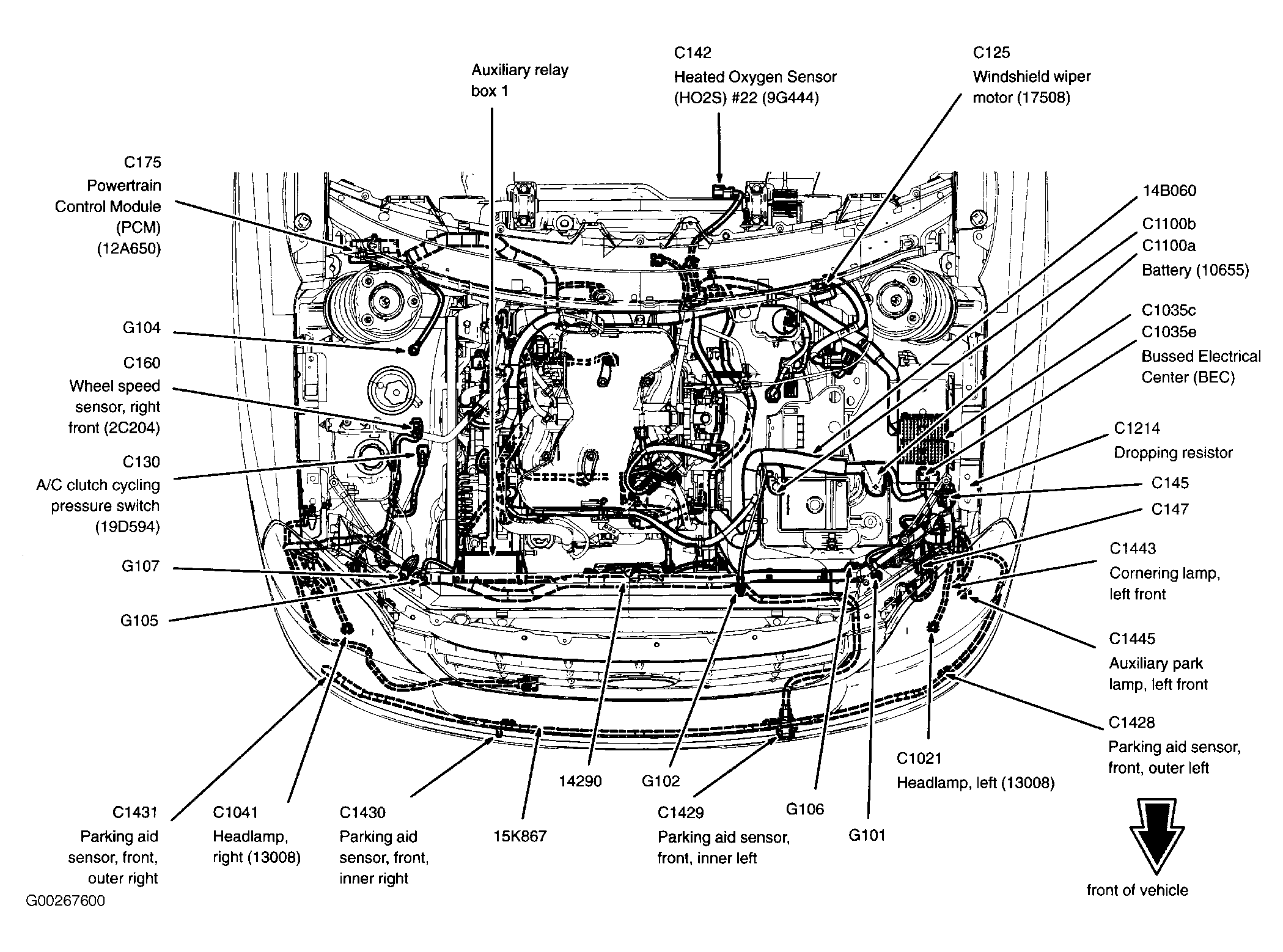 Powertrain Control Module (PCM) Right rear of engine compartment. See Figure.