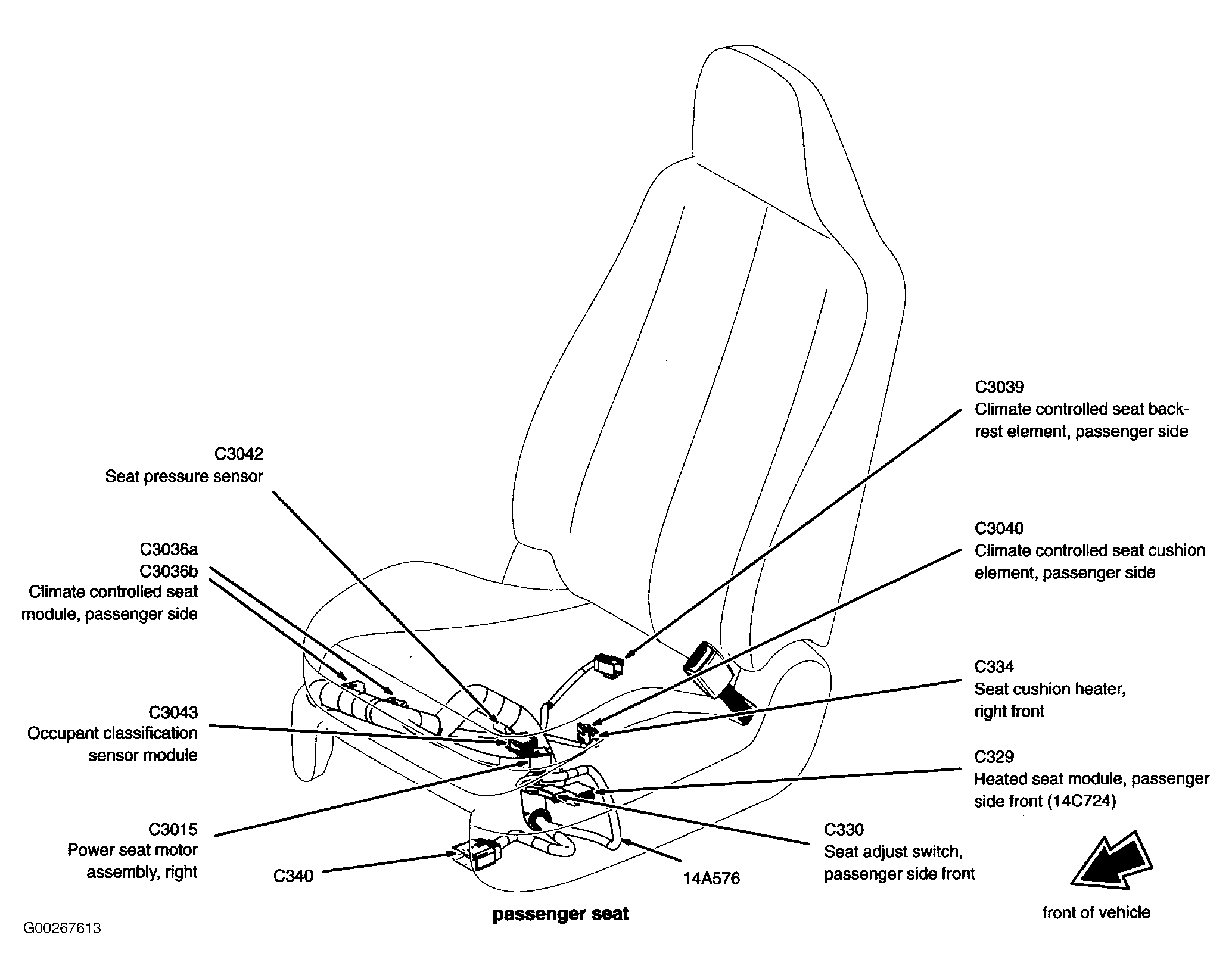 Climate Controlled Seat Module (Passenger Side) Under passenger's seat. See Figure.