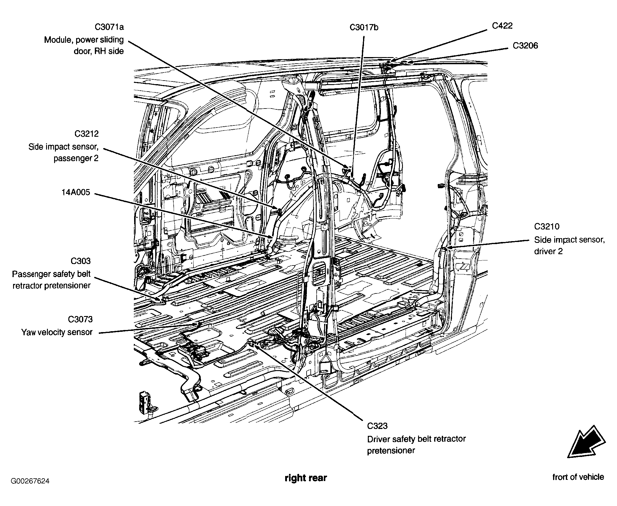 Power Sliding Door Module (Right Side) Above right rear wheelwell. See Figure.