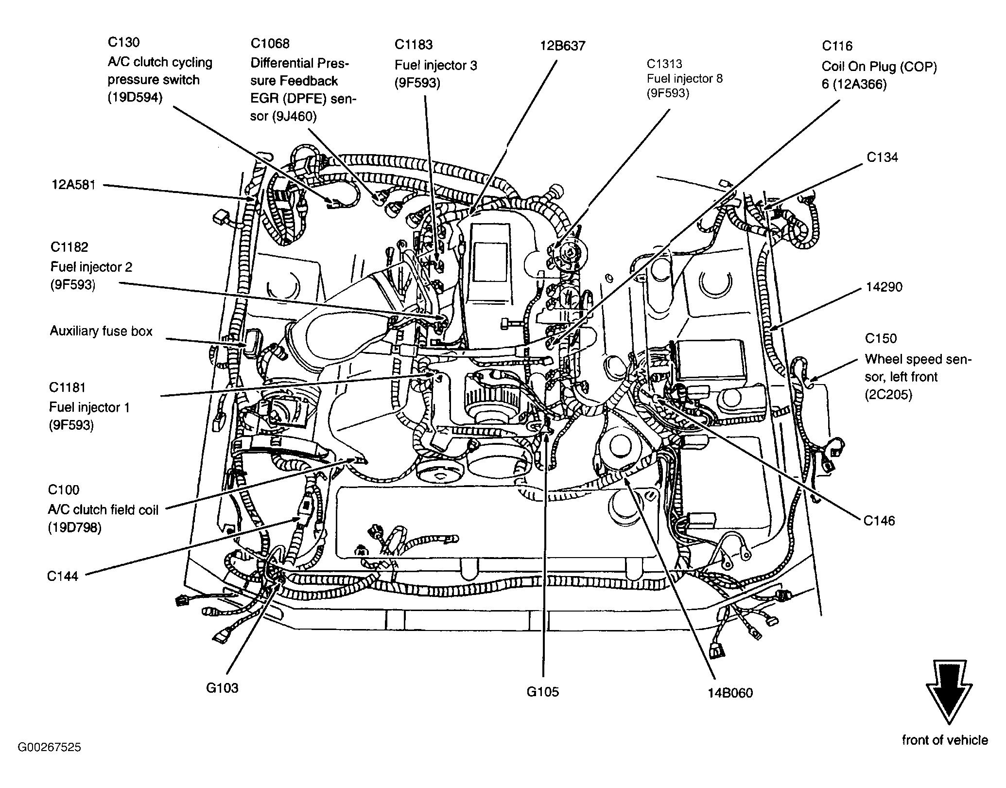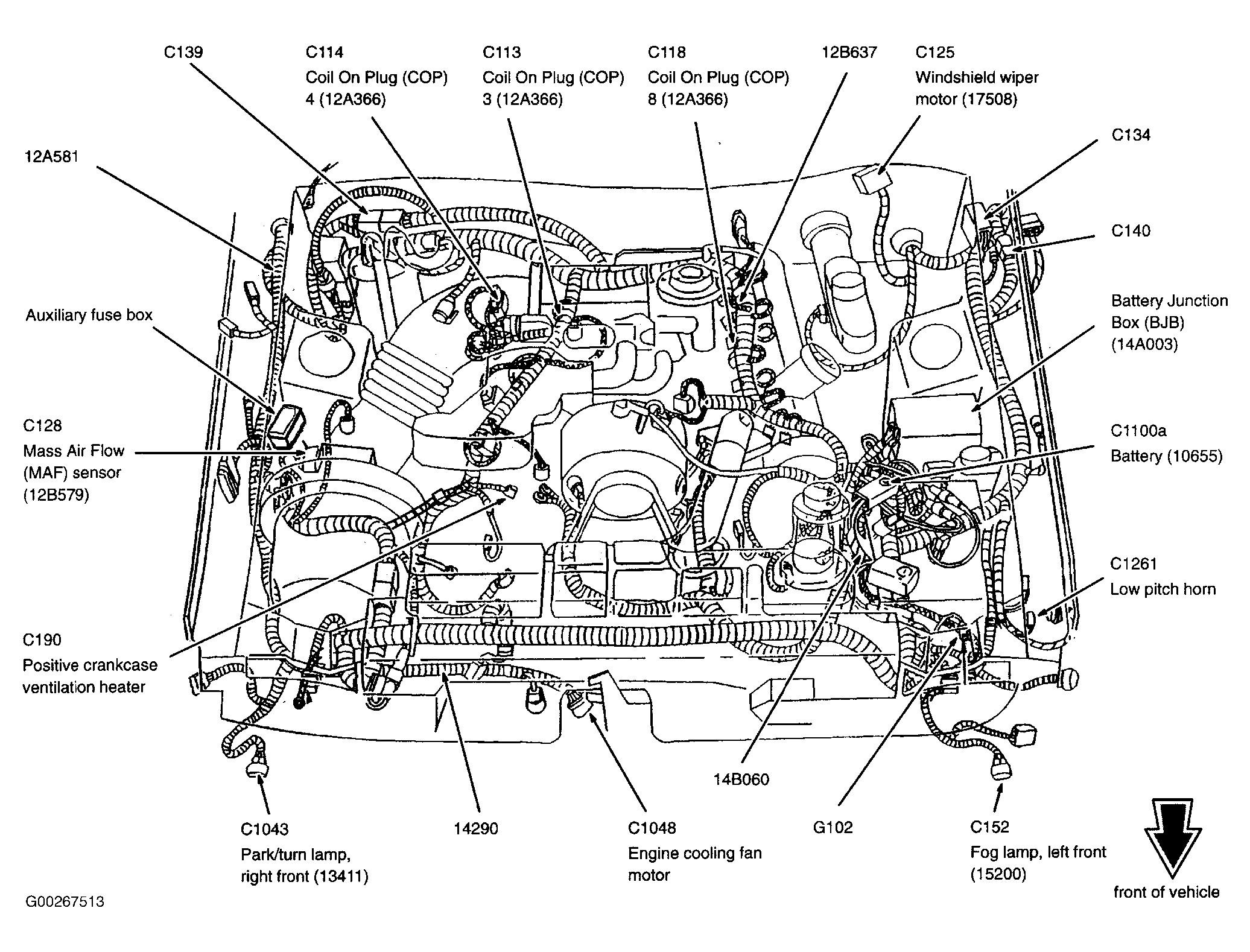 Battery Junction Box (BJB) (4.6L 2V) On left side of engine compartment, forward of strut tower. See Figure.