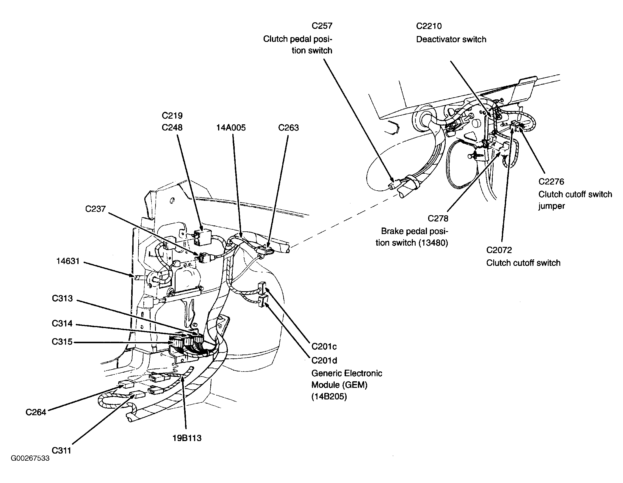 | Generic Electronic Module (GEM) | Below left side of dash. See Figure. |