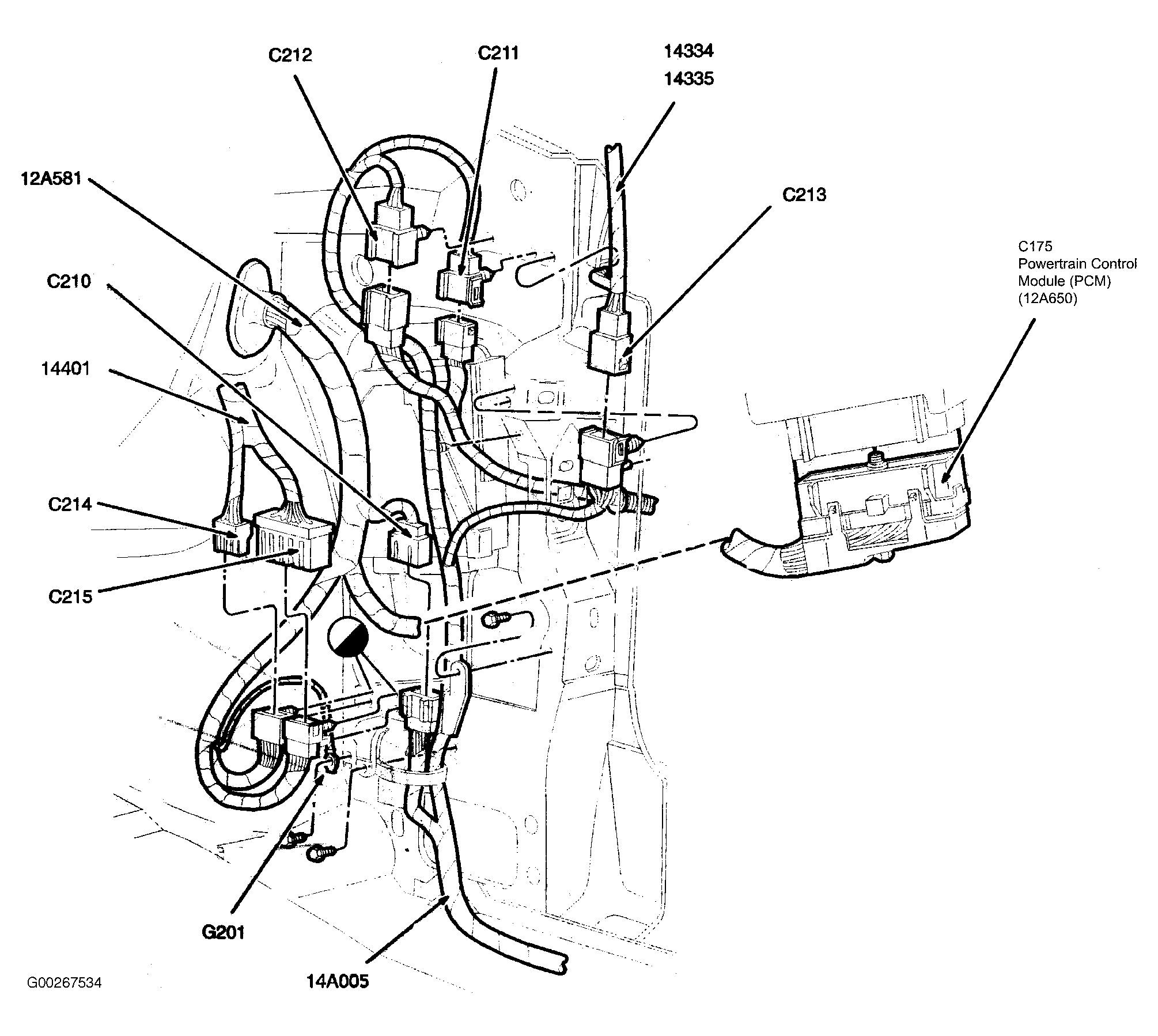| Powertrain Control Module | Behind right kick panel. See Figure. |
