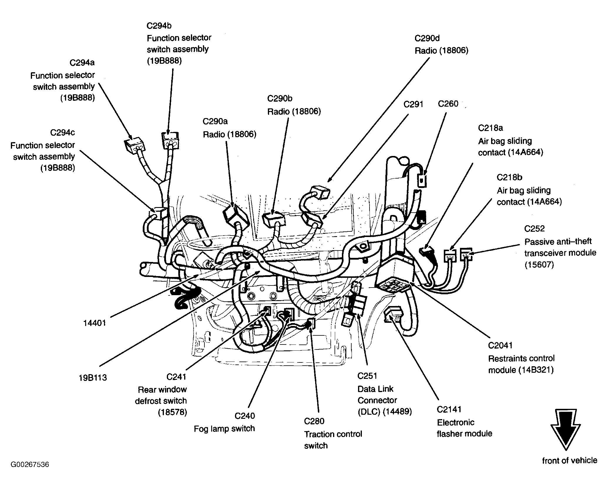 | Restraints Control Module | Behind lower center of dash. See Figure. |