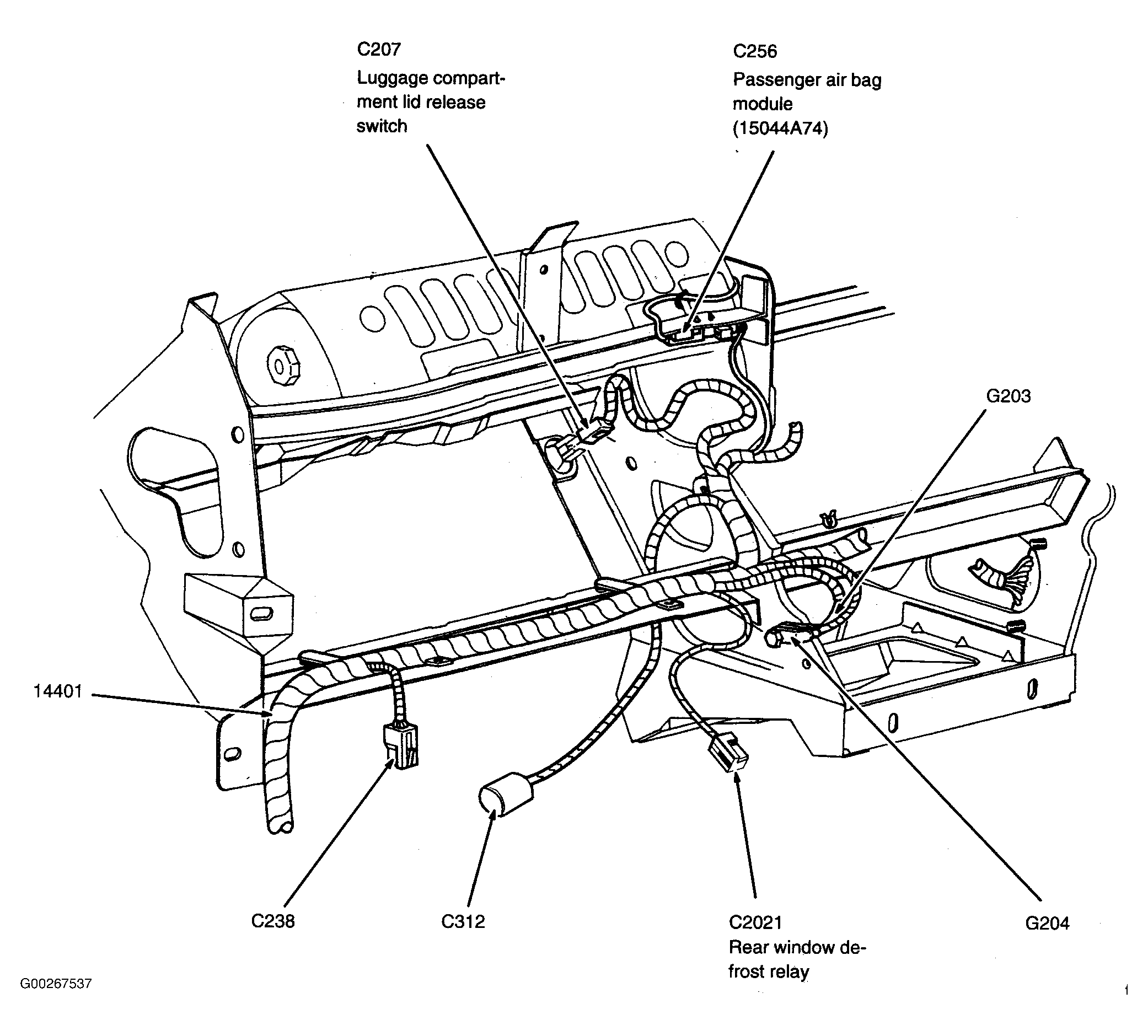 | Passenger Air Bag Module | At right side of dash. See Figure. |