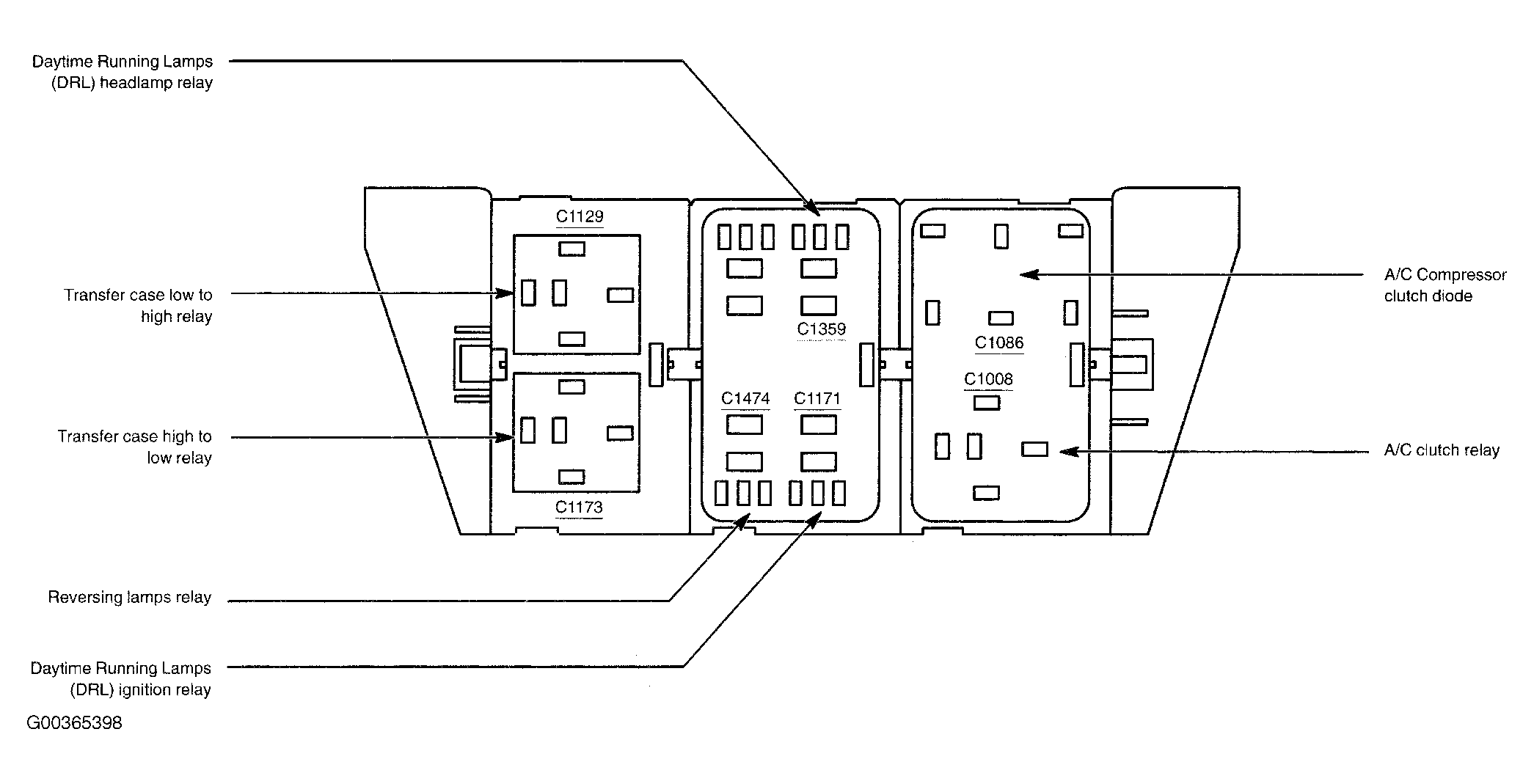 A/C Compressor Clutch Diode In auxiliary relay box 1. See Figure.