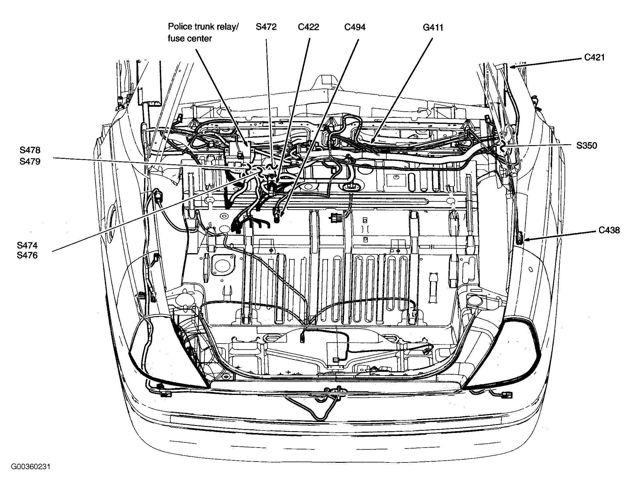 | Police Trunk Relay/Fuse Center | In luggage compartment. See Figure . |