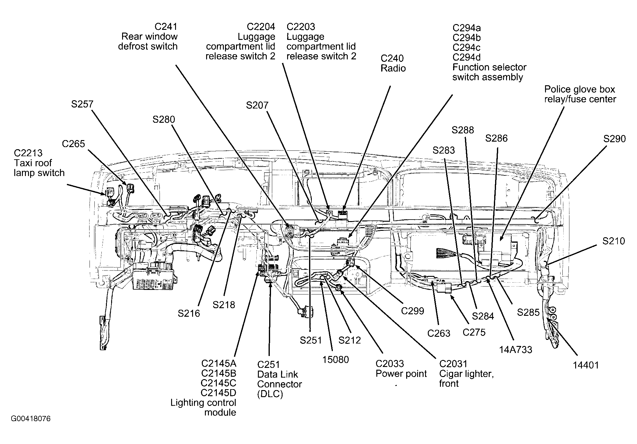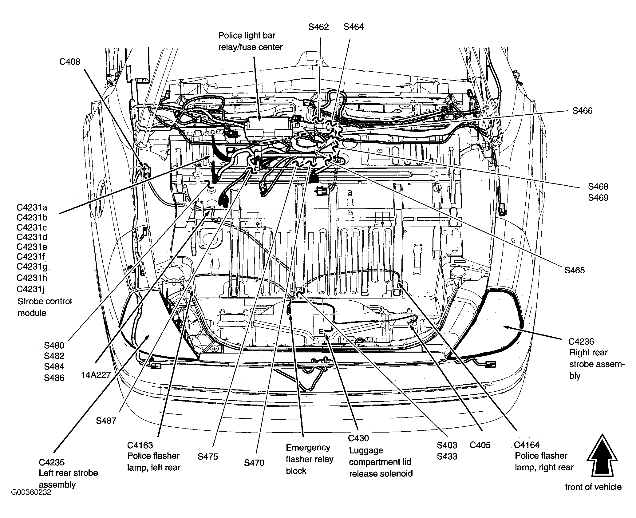 | Police Light Bar Relay/Fuse Center | In front of luggage compartment. See Figure . |