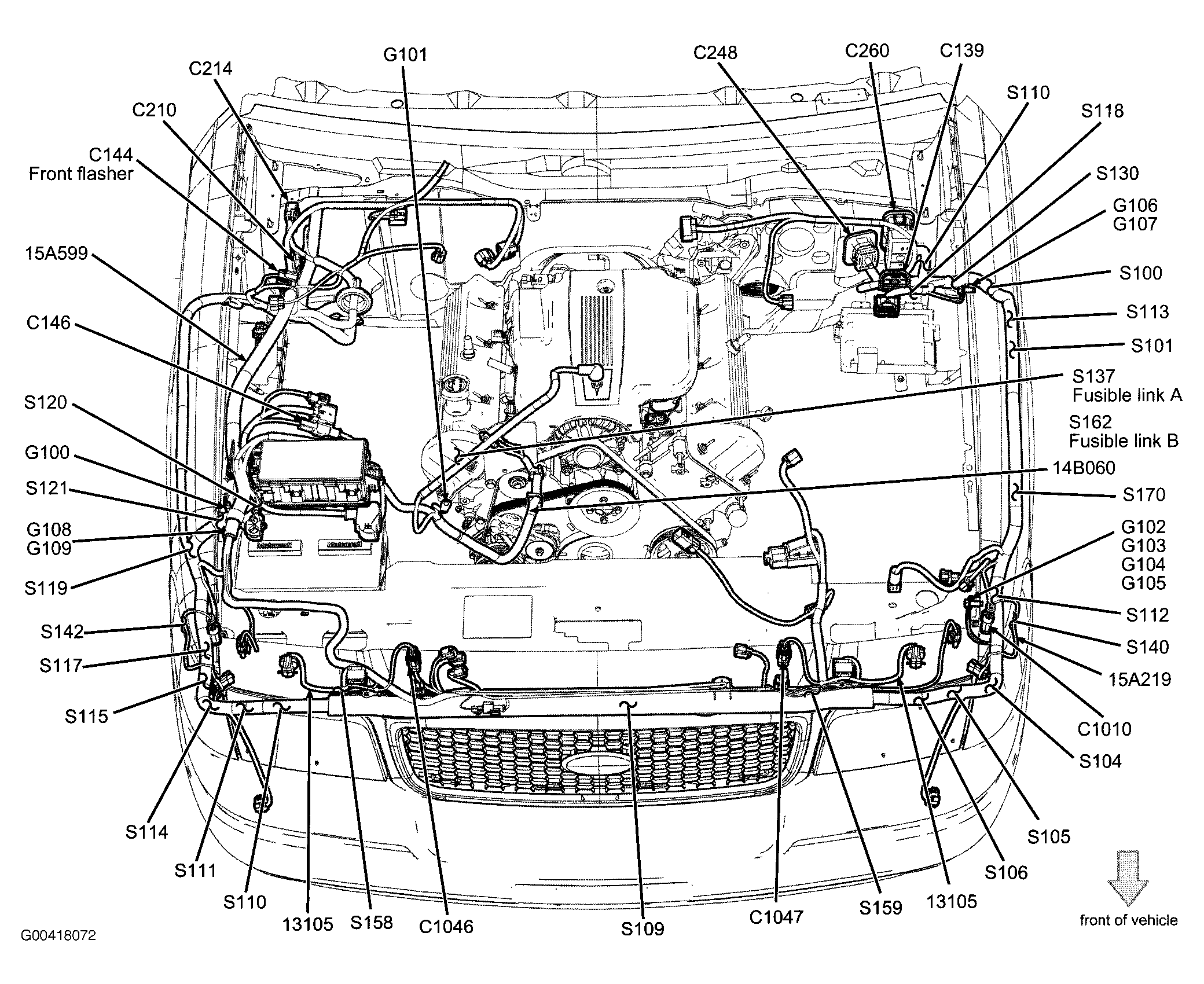 | Battery Junction Box (BJB) | In right front of engine compartment, behind battery. See Figure . |