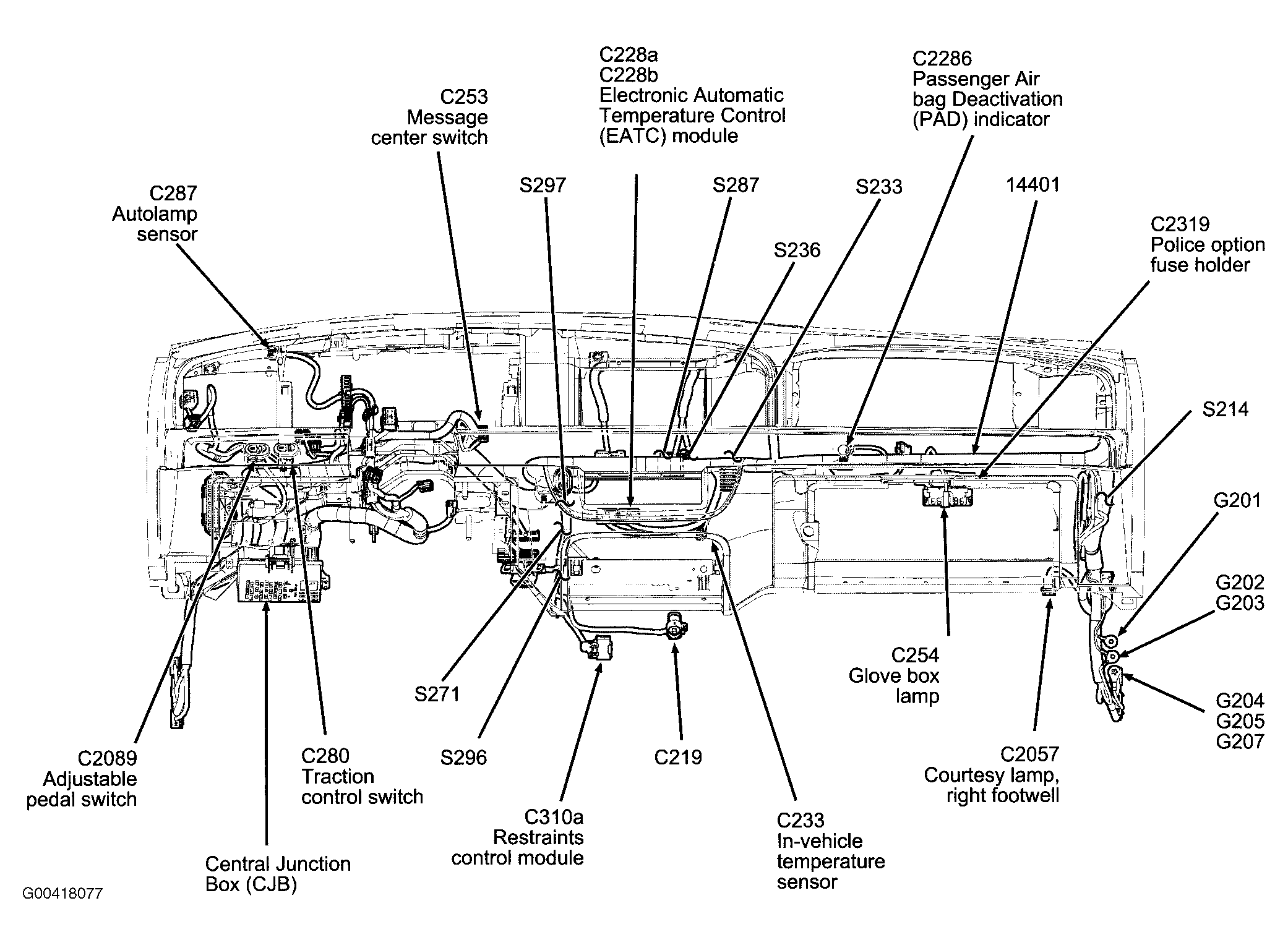 | Central Junction Box (CJB) | Below dash, left of steering column. See Figure . |