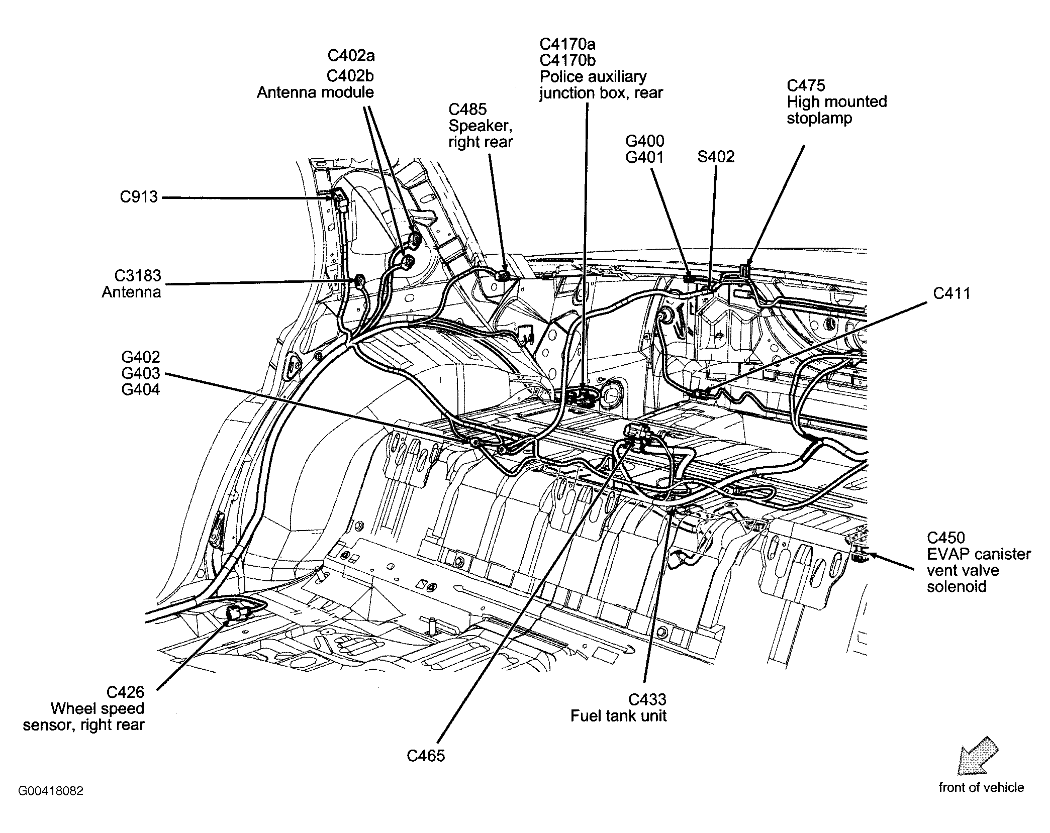 | Police Auxiliary Junction Box, Rear | Behind bottom center of rear seats. See Figure . |
