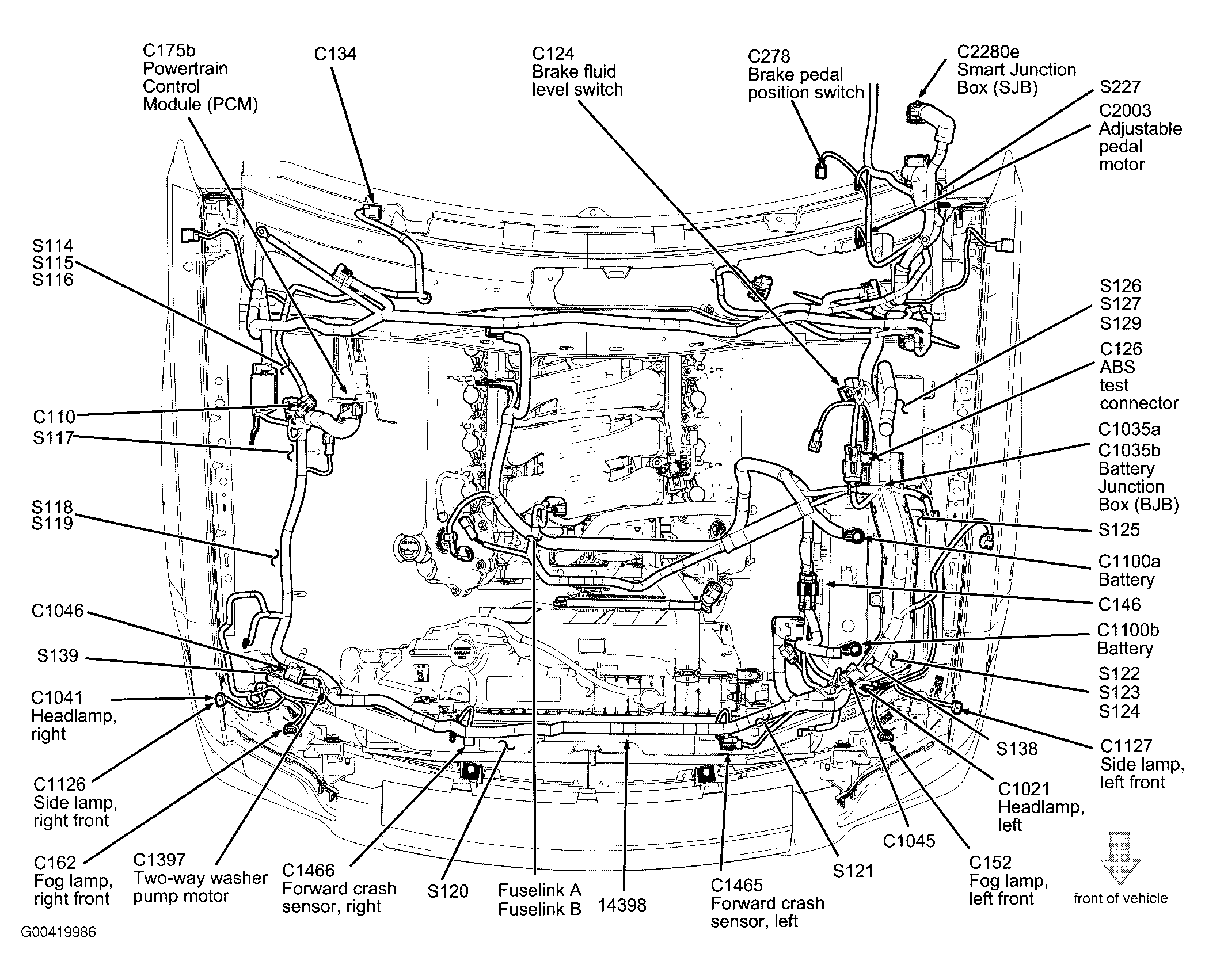 | Fuselink B (4.0L) | Right front of engine. See Figure. |