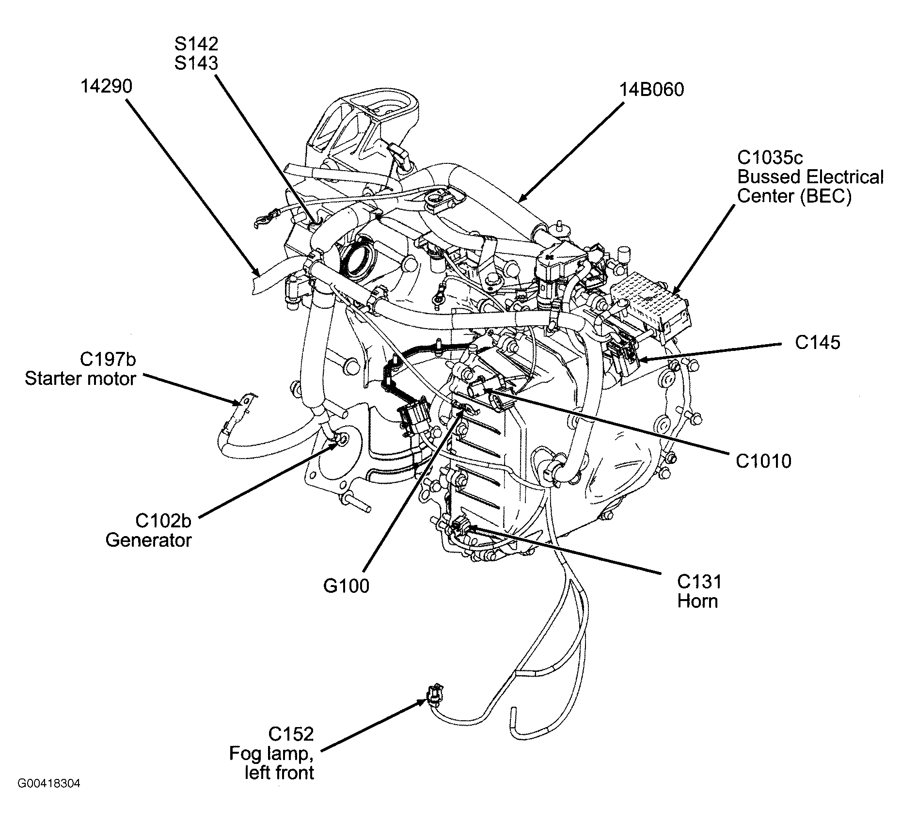 S143 In starter motor & battery ground harness, near breakout to generator. See Figure.