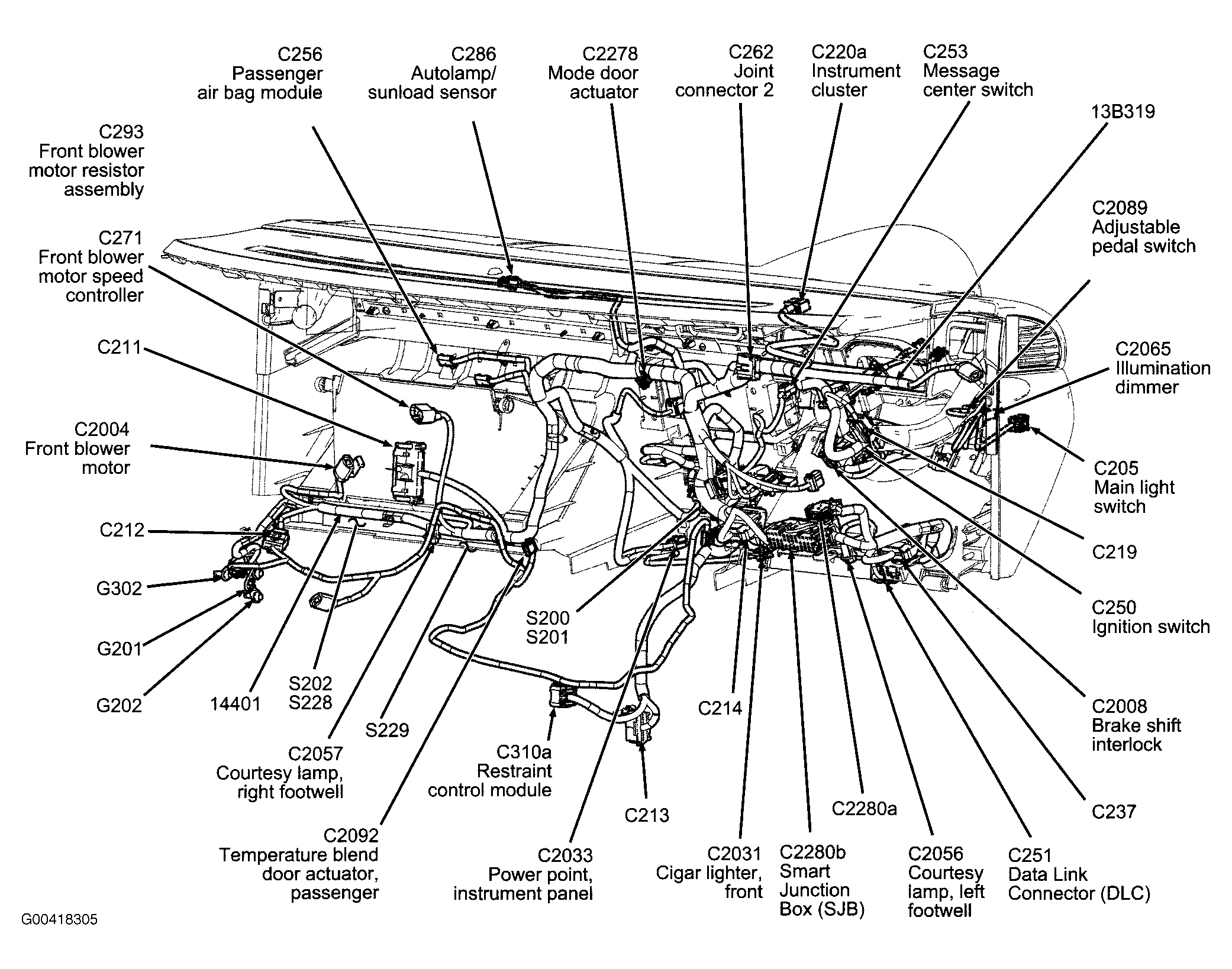 S204 Center of dash. See Figure.
