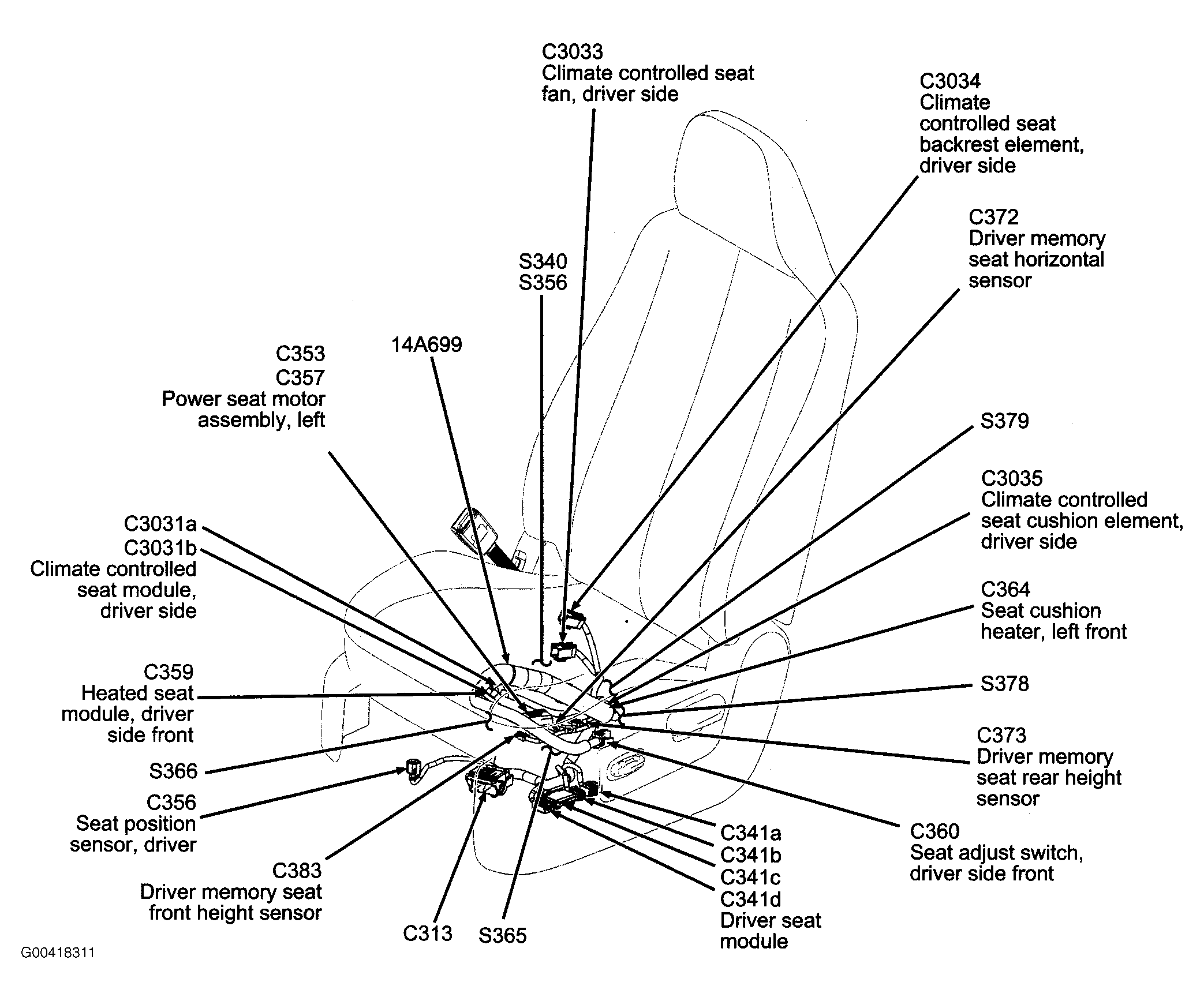 S378 In power seats harness, near breakout for driver's seat module.