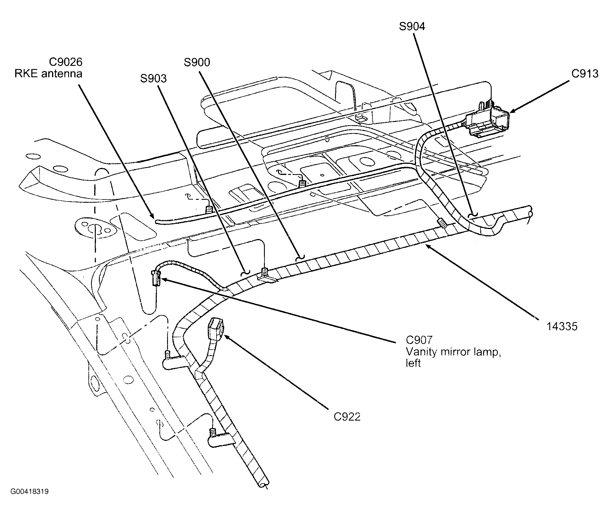 S900 In interior illumination harness, near breakout for C913.