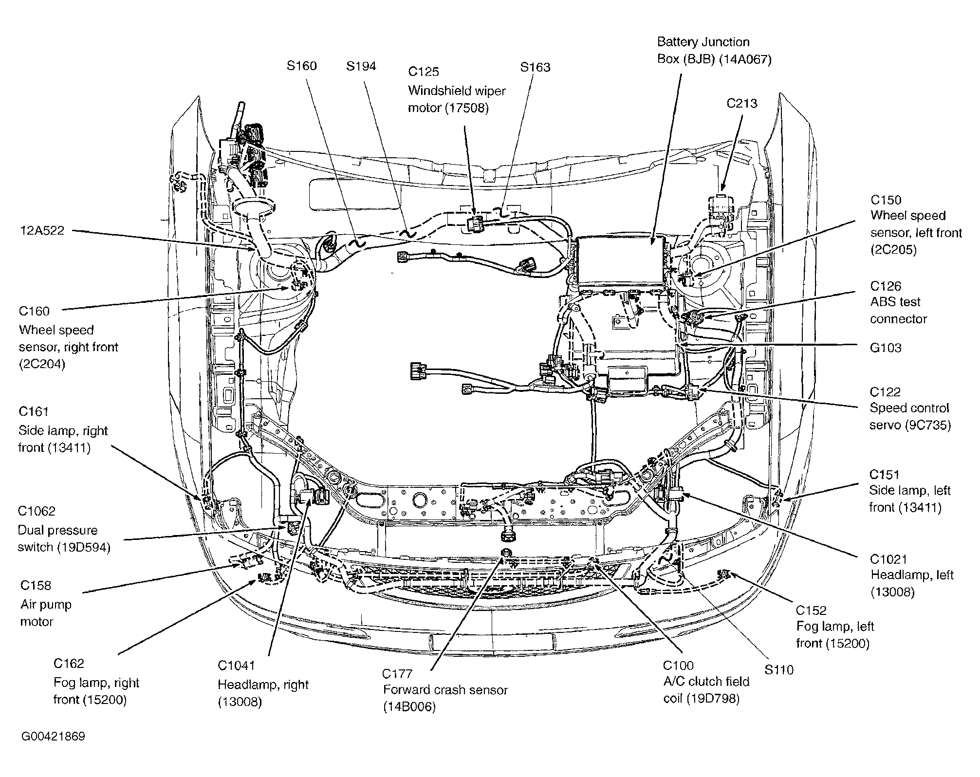 | S110 | In junction box wiring harness, near breakout for left front foglight. See Figure. |