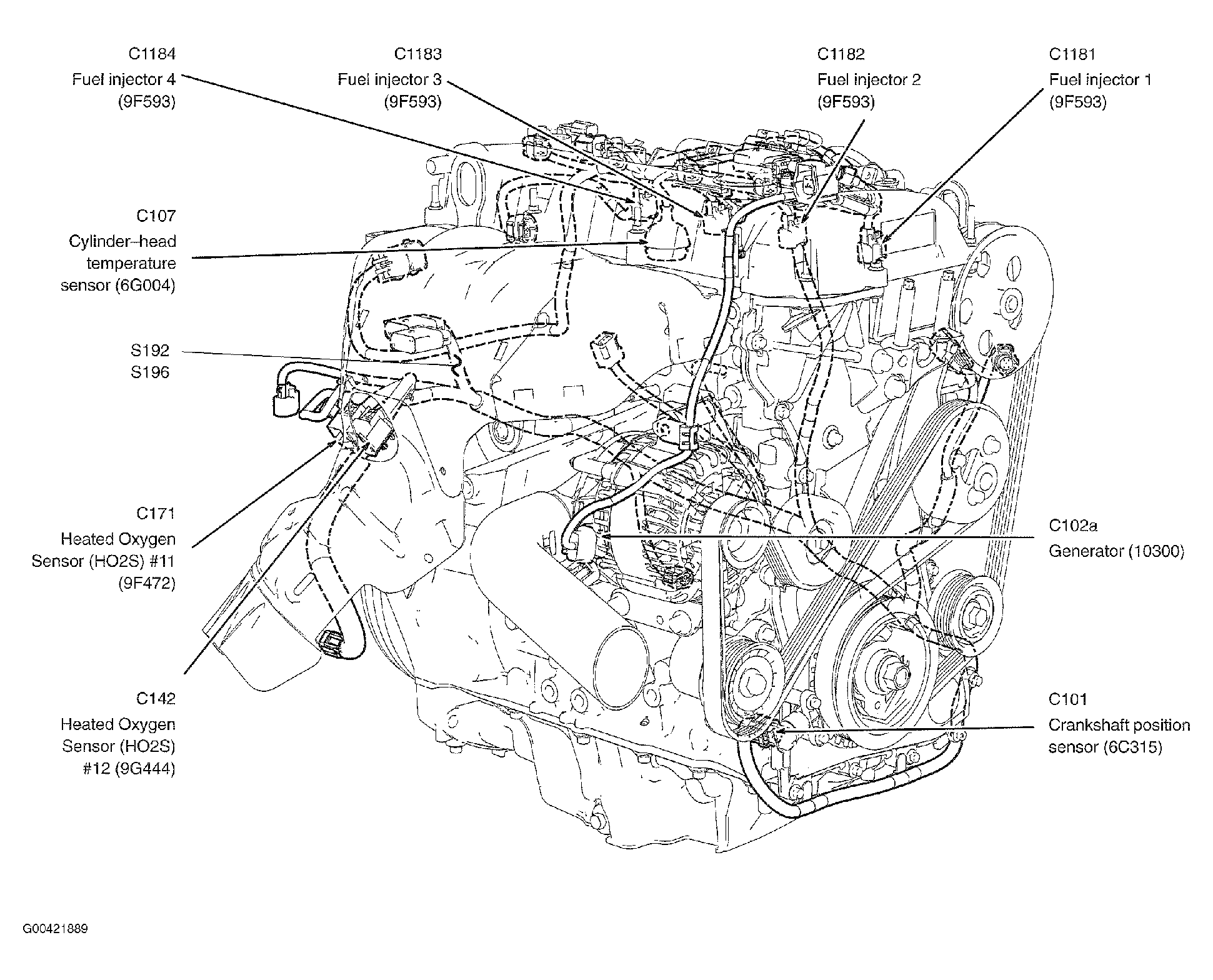 | S192 | In engine control wiring harness, at rear of engine. See Figure. |