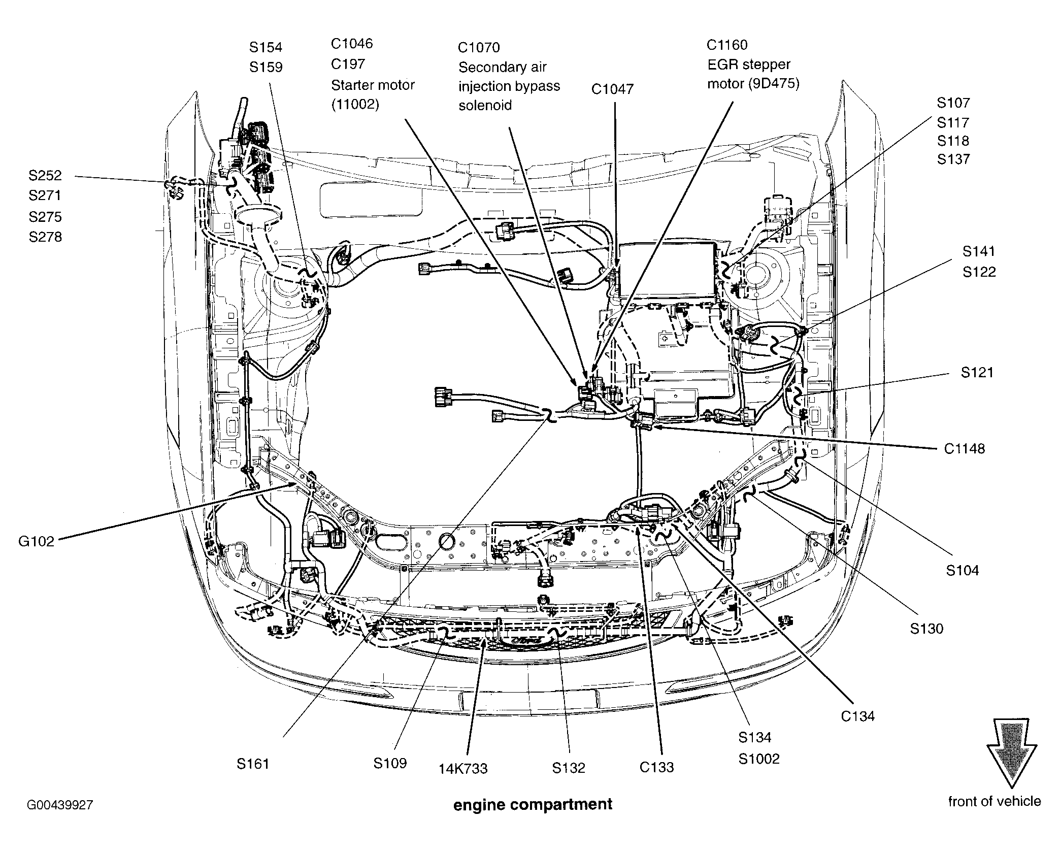 | S252 | In engine control harness, near breakout to powertrain control module. See Figure. |