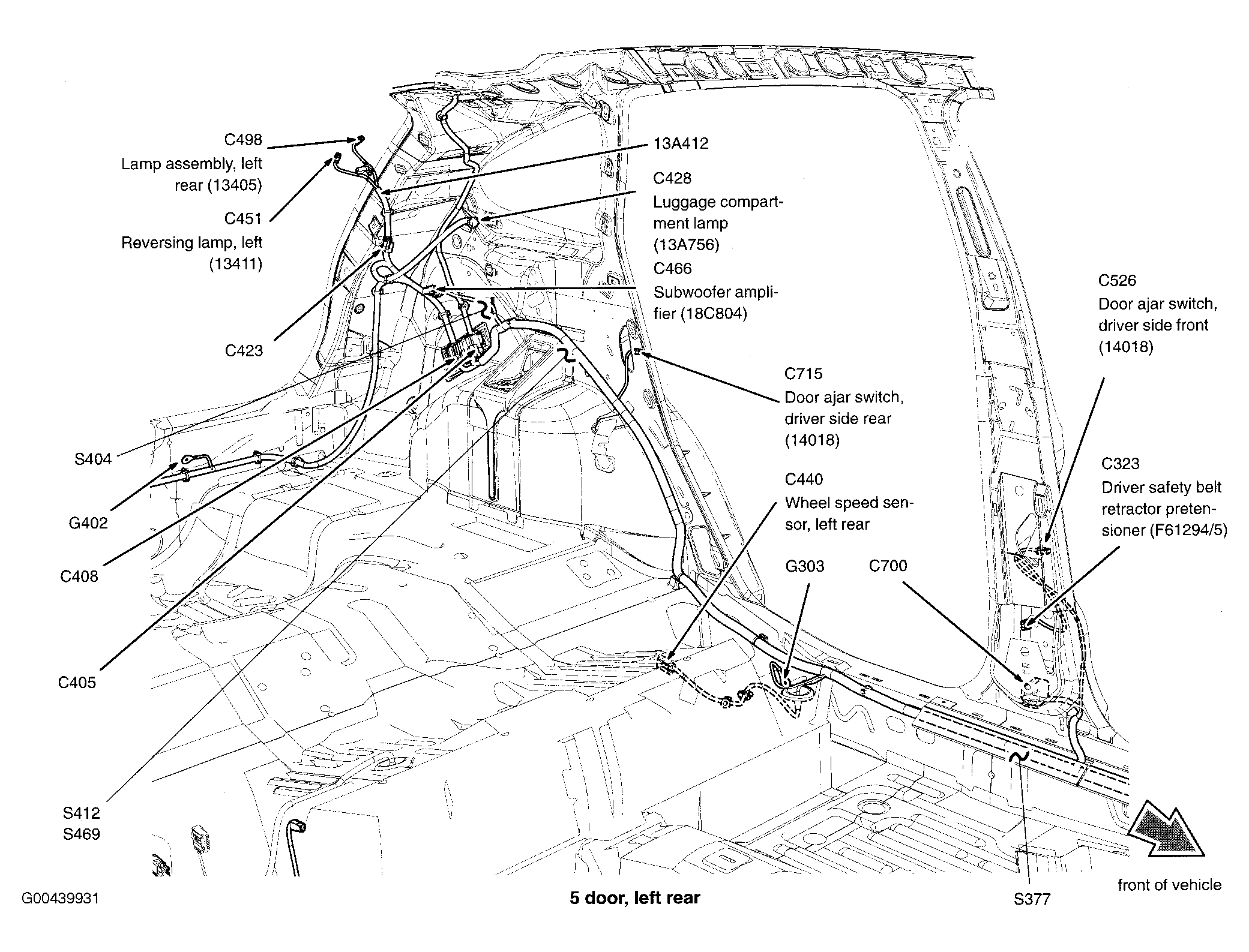| S412 (5 Door) | In taillights wiring harness, near breakout to C408. See Figure. |