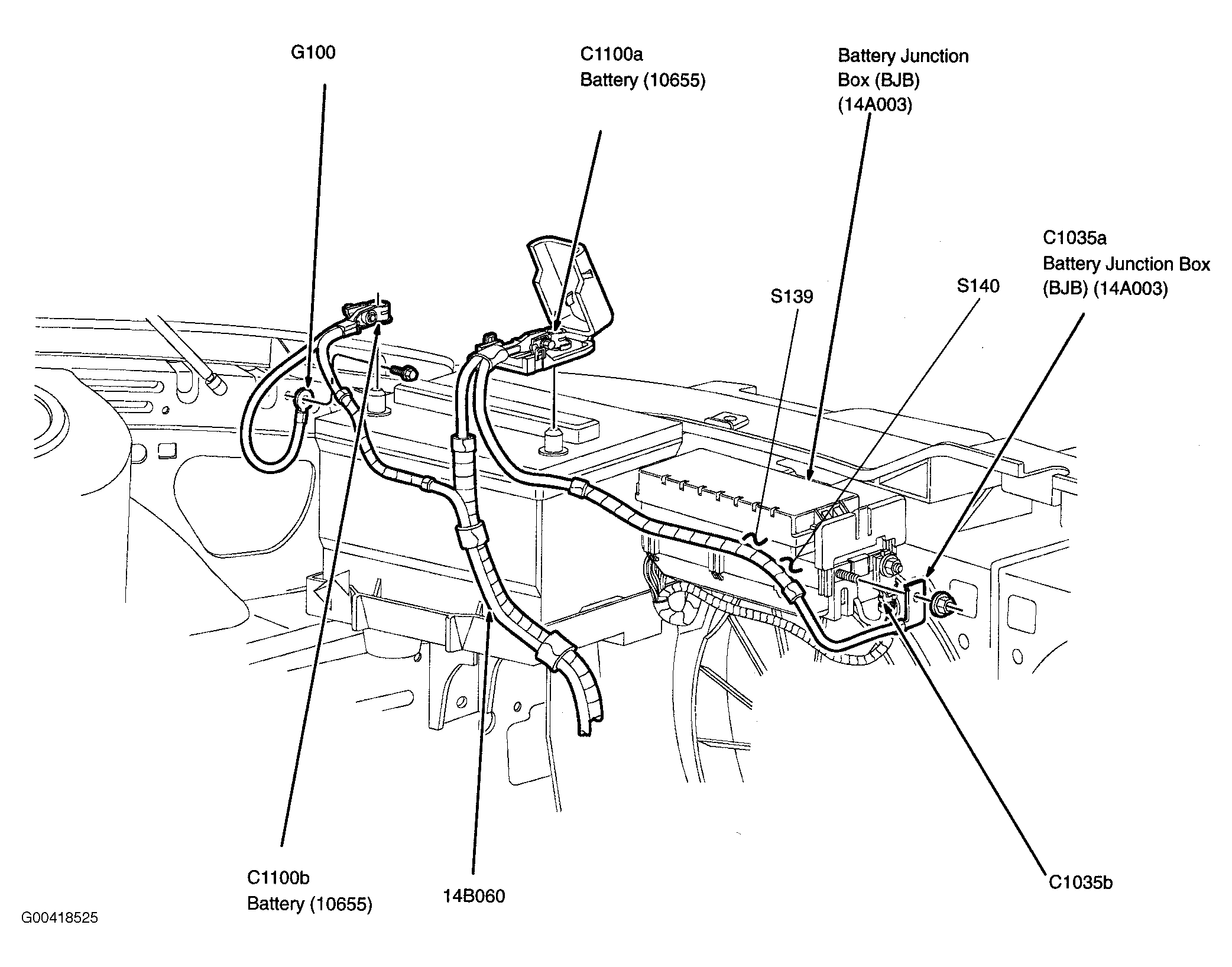 Battery Junction Box Front center of engine compartment, behind radiator. See Figure.