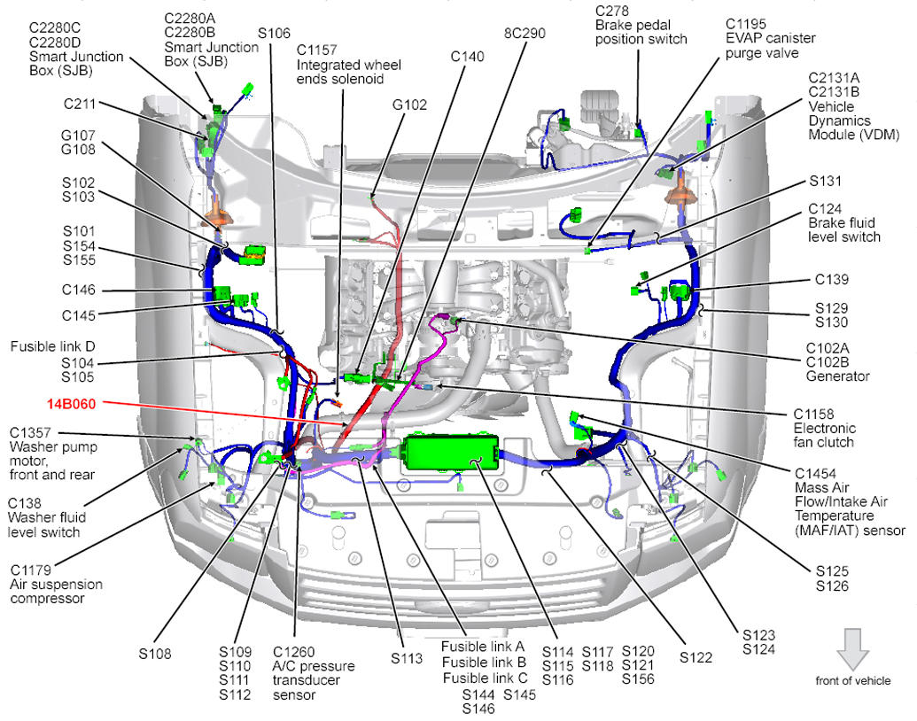 Vehicle Dynamics Module (VDM) (Navigator) Left rear of engine compartment. See Figure.