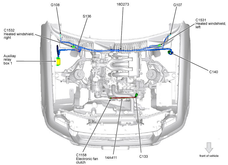 | Fuselink B (4.0L) | Right front of engine. See Figure. |