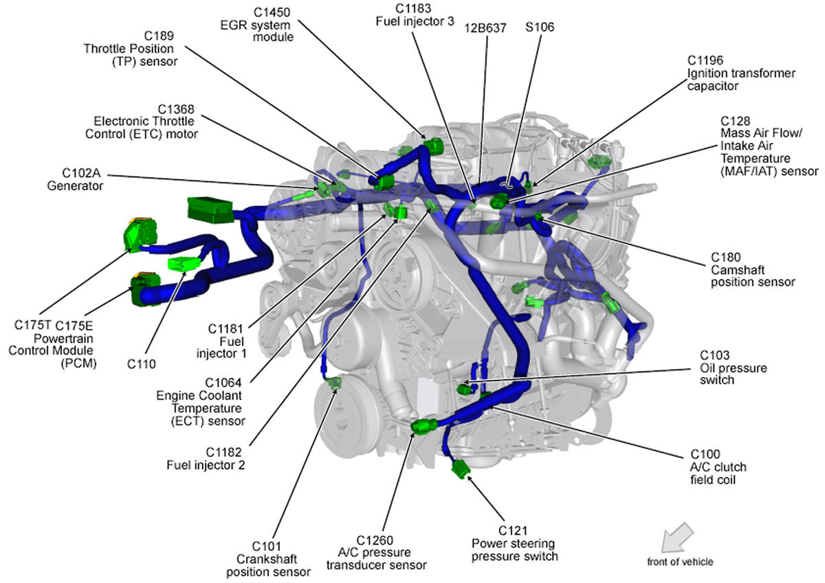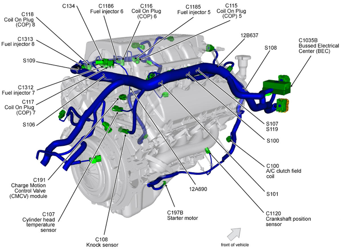 | Powertrain Control Module (PCM) | Right front of engine compartment. See Figure. |