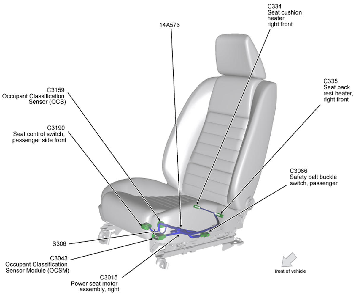 | Occupant Classification Sensor Module | Under passenger's seat. See Figure. |