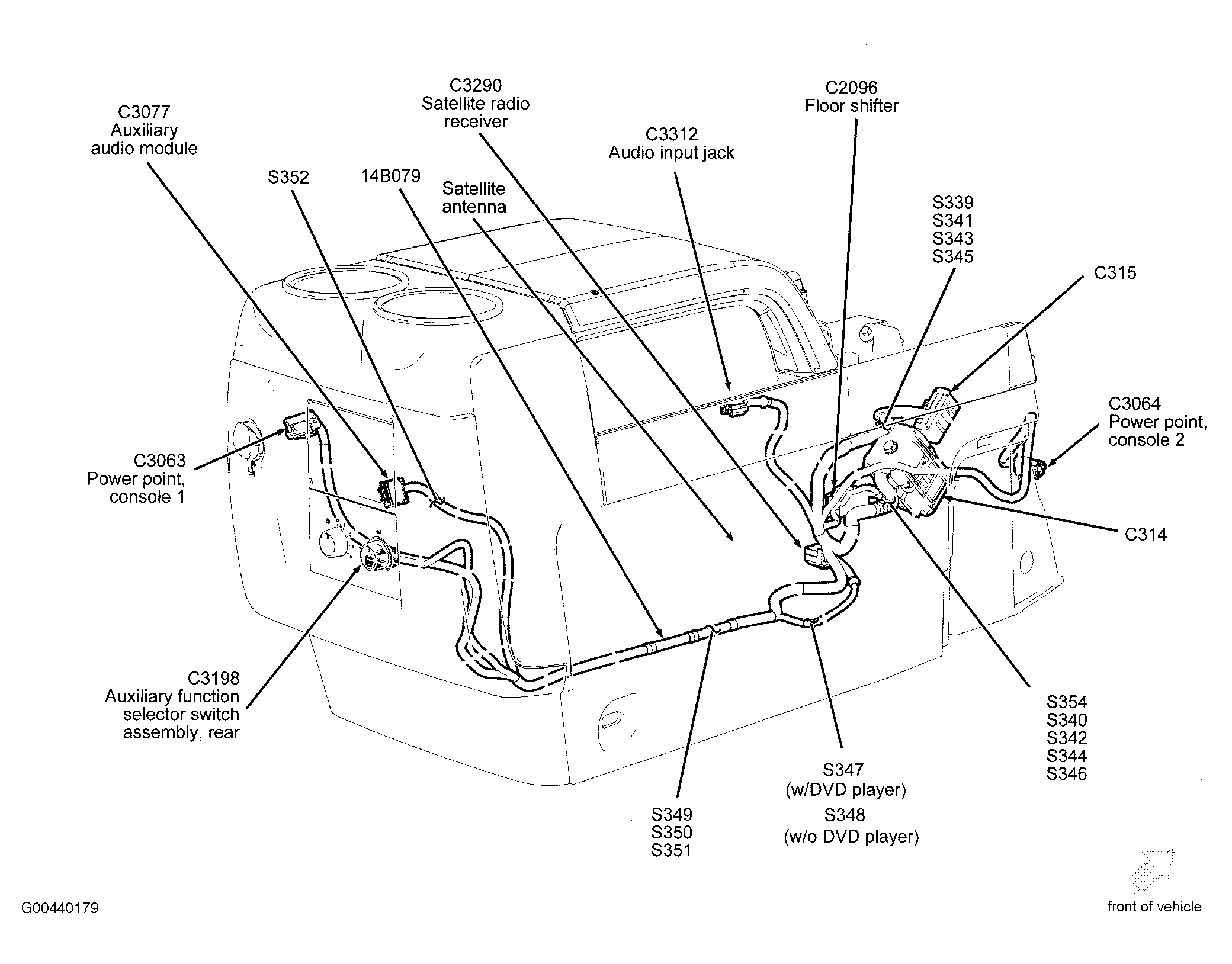 Auxiliary Audio Module Rear of center console. See Figure.