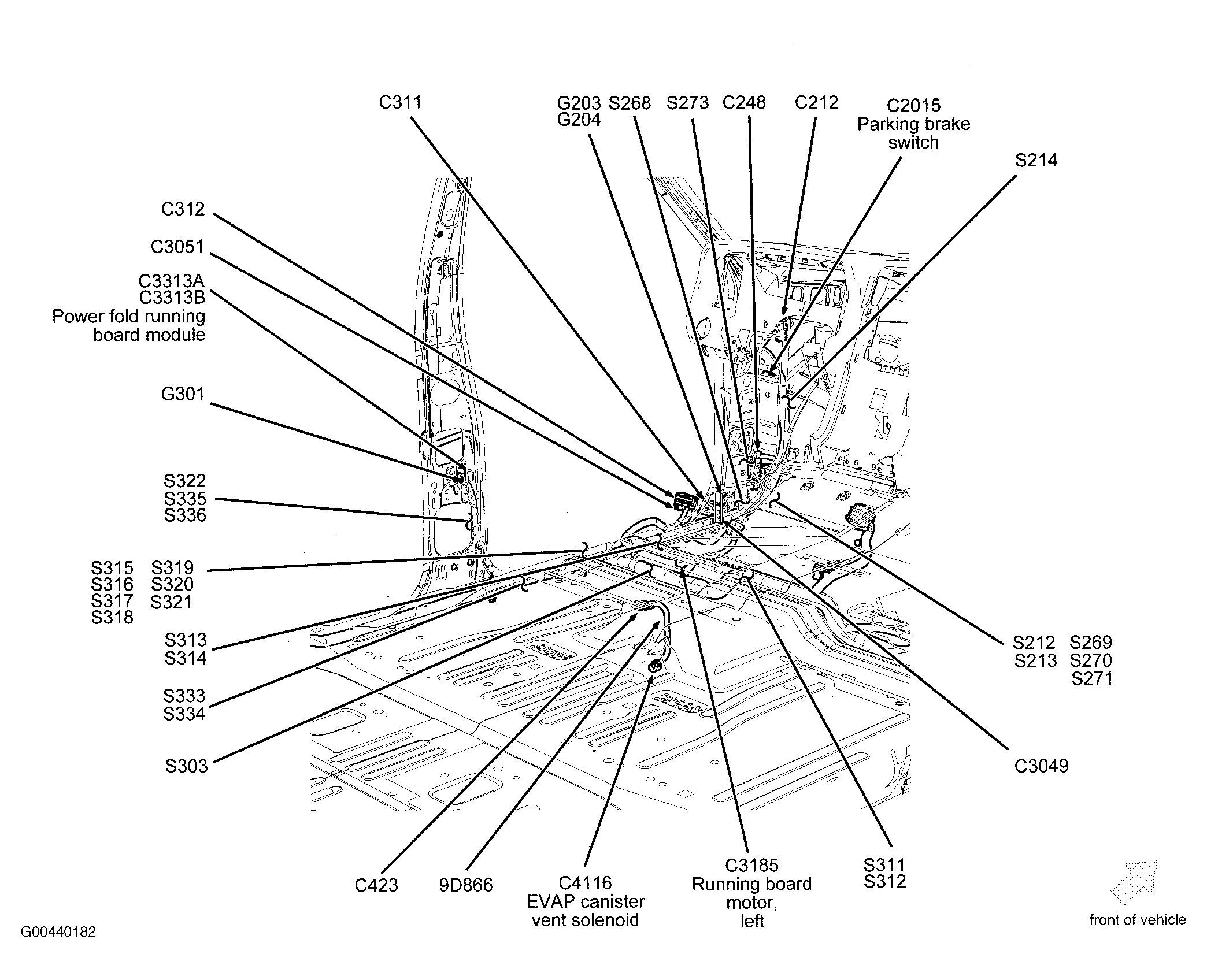 Power Fold Running Board Module Left "B" pillar. See Figure.