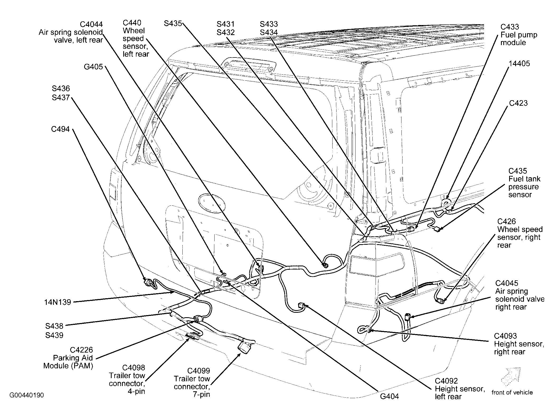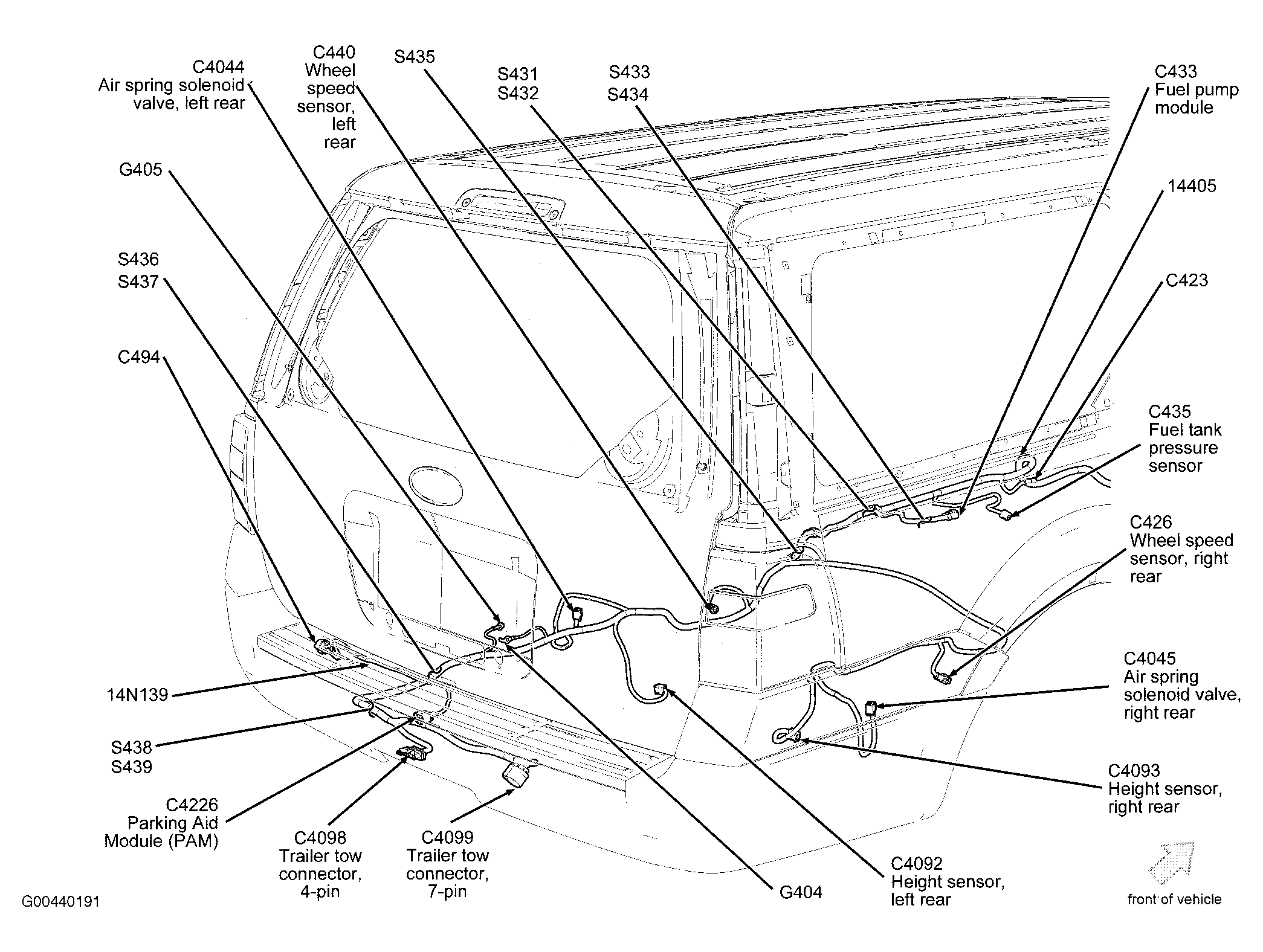 Parking Aid Module (PAM) (Expedition-EL & Navigator-L) Under center rear of vehicle. See Figure.