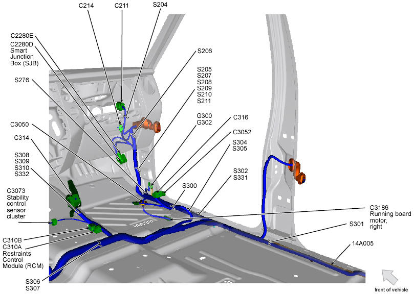 Restraints Control Module (RCM) (Expedition) Below center console. See Figure.