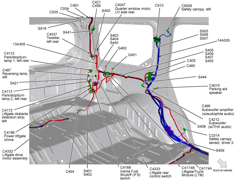 Power Liftgate Module (Expedition-EL & Navigator-L) Left side of cargo area, behind trim. See Figure.