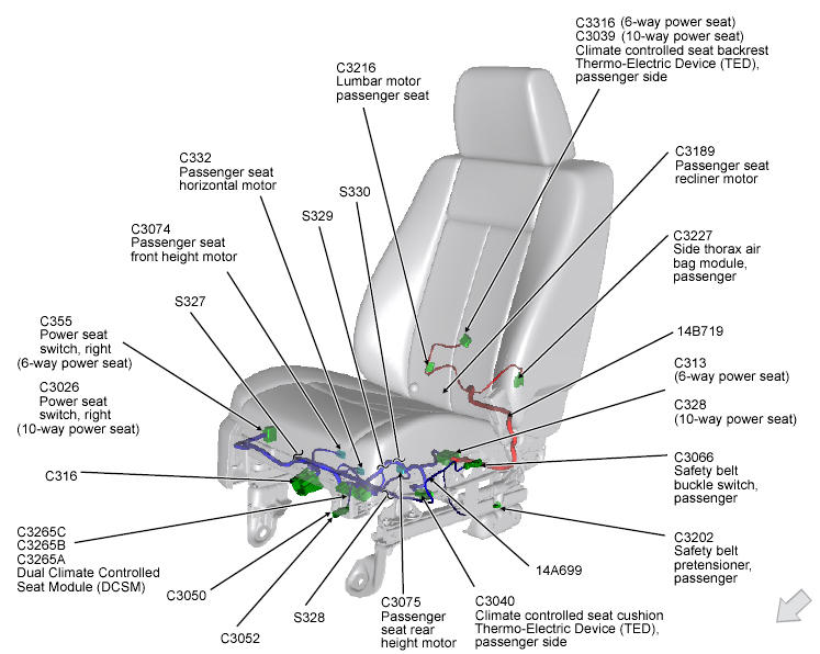 Climate Controlled Seat Module (Passenger Side) Under front passenger's seat. See Figure.