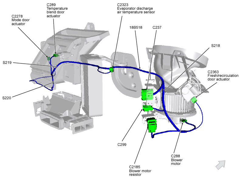 Heater Blower Control Module Right side of HVAC unit. See Figure.