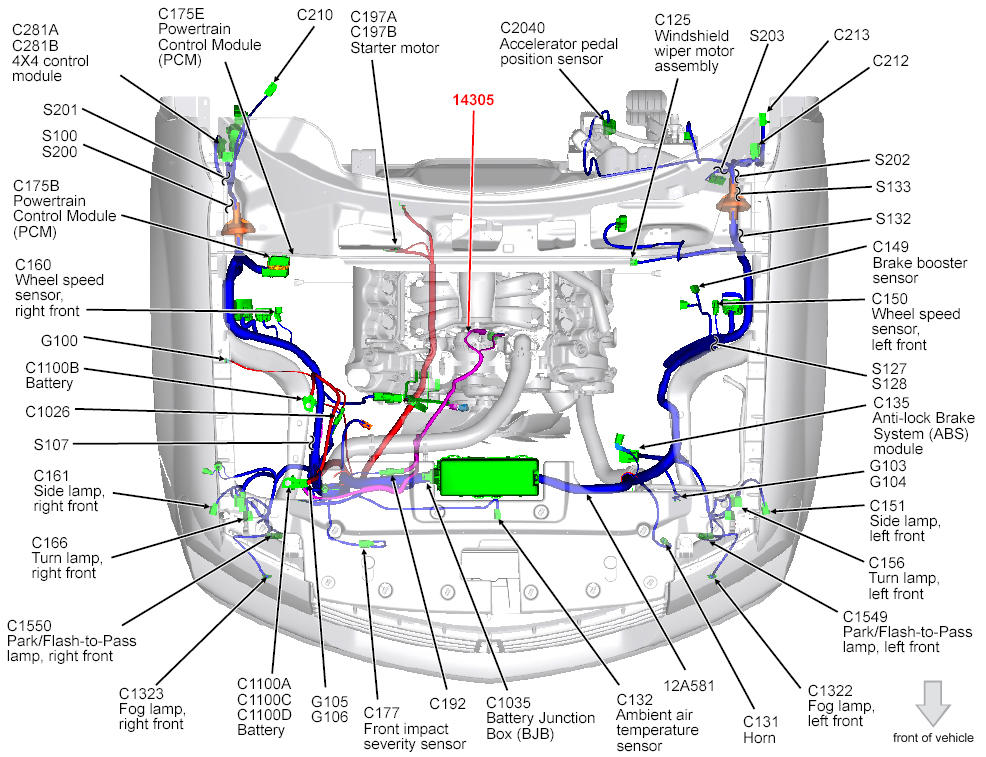 Powertrain Control Module (PCM) (Expedition) Right rear of engine compartment. See Figure.