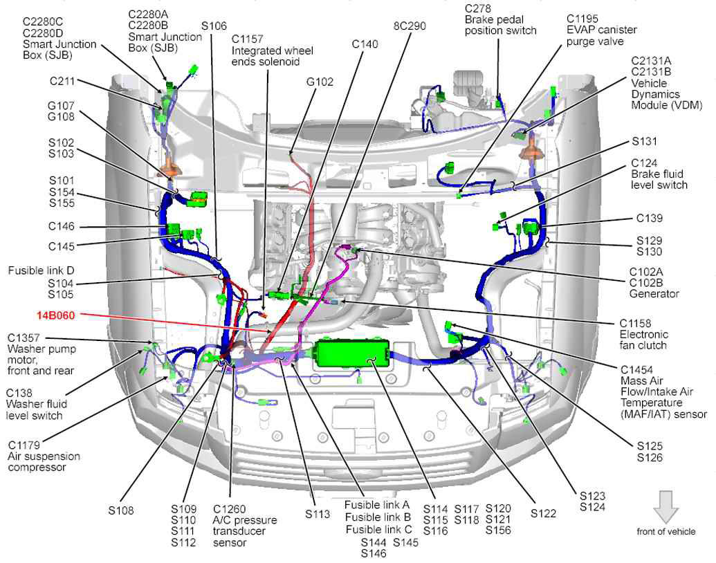 Vehicle Dynamics Module (VDM) (Expedition) Left rear of engine compartment. See Figure.
